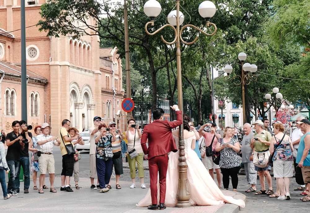 ปัจจุบัน เราจะเห็นว่า บริเวณจัสตุรัสนอร์ท เทรอ ดาม จะเป็นที่นิยมของคนเวียดนาม มาถ่ายภาพพรีเวดดิ้งกันมาก จูงมือกันเป็นคู่ๆ แฟนคู่ใจ ตากล้องคู่กาย ถ่ายกันทุกซอกทุกมุมของ จัสตุรัสนอร์ท เทรอ ดาม ตั้งแต่หน้าโบสถ์ยันใต้อาคารไปรษณีย์ โอบไหล่กอดคอกันเต่าแห้ง โพสท่าแสดงความรักกันที กลีบกุหลาบแทบจะร่วงไปตามทางที่เดิน เดินไปตรงไหนเหมือนมีดอกไม้บาน นกร้องเพลง เห็นแล้วก็อดรู้สึกคันยุบยับไม่ได้ ..โอ้ยยย อย่างกับความรักทั้งโลกมันมารวมกันอยู่ตรงนี้