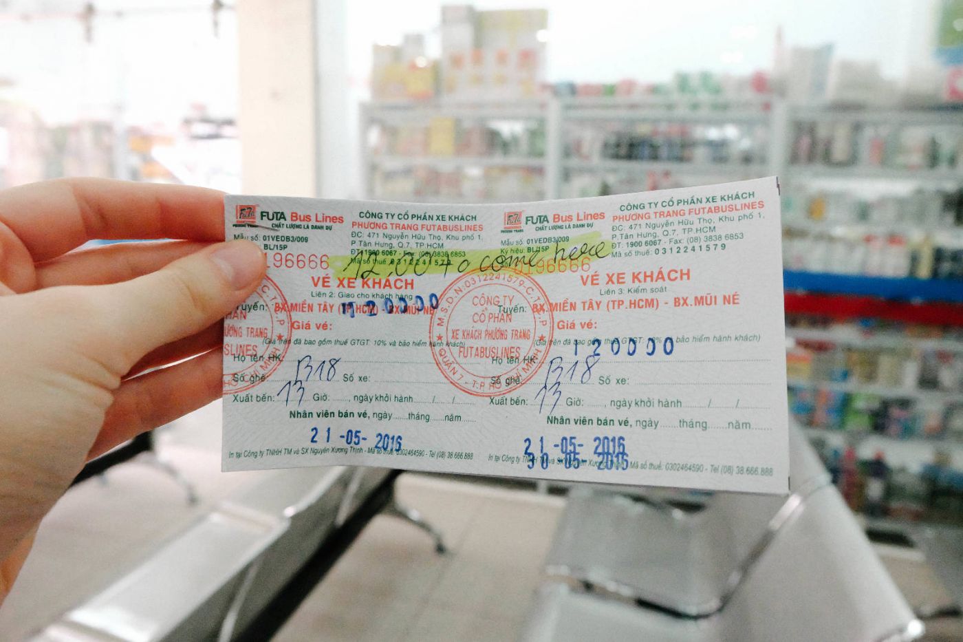 รถนอนจากโฮจิมินห์ไปมุยเน่ ของ FUTA Bus Lines : 120.000 vnd/ คน