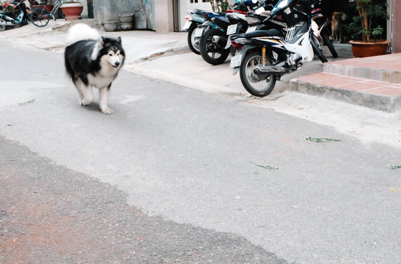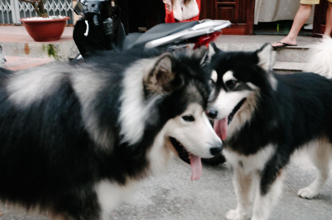 มีหมาสองตัวกำลังวิ่งเล่นกันอยู่ข้างๆซอย หมาที่ว่าเป็นหมาพันธุ์ปั๊ก กับ พันธุ์อลาสก้า