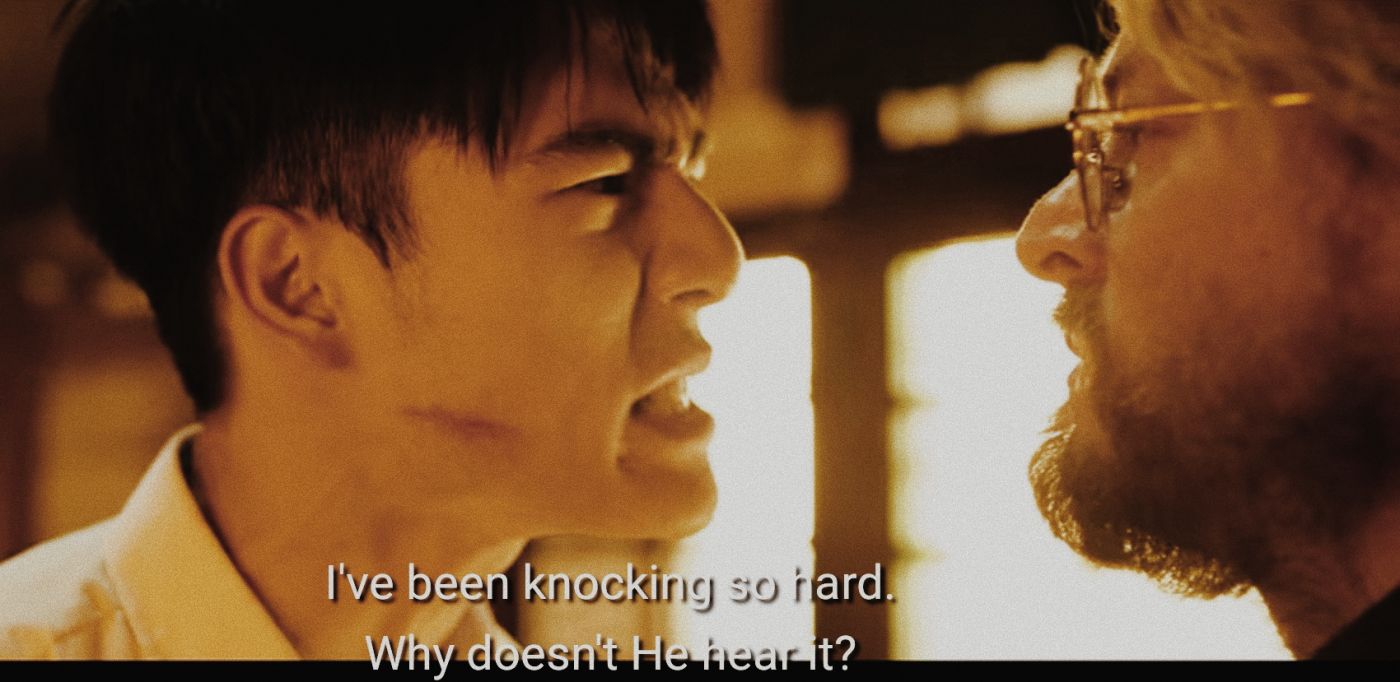 อาฮั่น : พระเจ้าบอกไม่ใช่เหรอ "ขอแล้วจะได้ หาแล้วจะเจอ เคาะประตูแล้วจะเปิด ผมเคาะแทบตายทำไมพระองค์ไม่ได้ยินเลยล่ะ