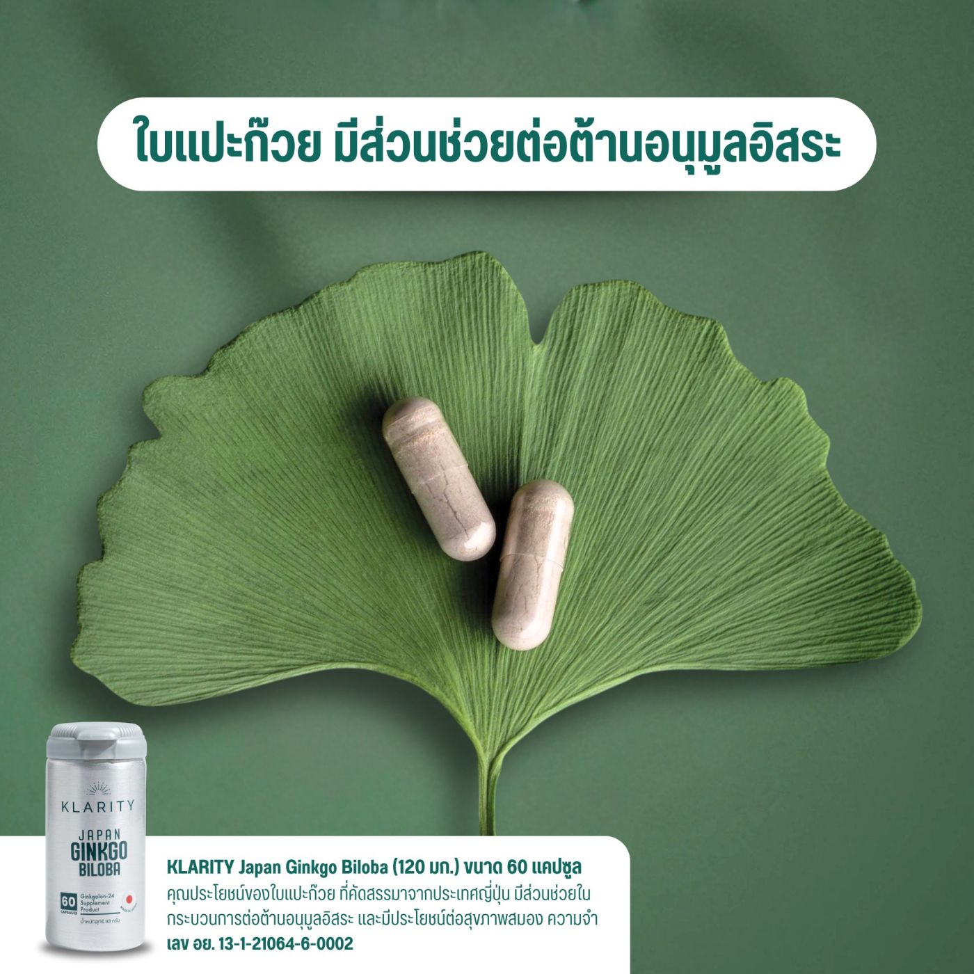 หากคุณกำลังมองหาตัวช่วยดูแลสุขภาพที่ครอบคลุมทั้งภูมิคุ้มกัน สมอง และการไหลเวียนโลหิต KLARITY Japan Ginkgo Biloba คือคำตอบที่ใช่ เพียงวันละ 1-2 แคปซูล คุณก็สามารถมอบการดูแลที่ดีที่สุดให้กับตัวเอง