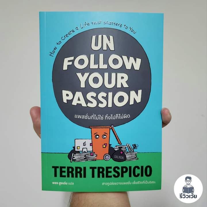 UN FOLLOW YOUR PASSION" เมื่ออ่านจบทำให้เราเกิดคำถามขึ้นว่า อันที่จริงแล้วเราจำเป็นไหมที่ต้องตามหาแพสชั่นของตัวเองให้เจอแล้วทำตามแพสชั่นนั้น หรือมันจำเป็นไหมที่เราต้องเติบโตขึ้นมาภายใต้ค่านิยมบางประการของสังคม ซึ่งเนื้อหาในเล่ม