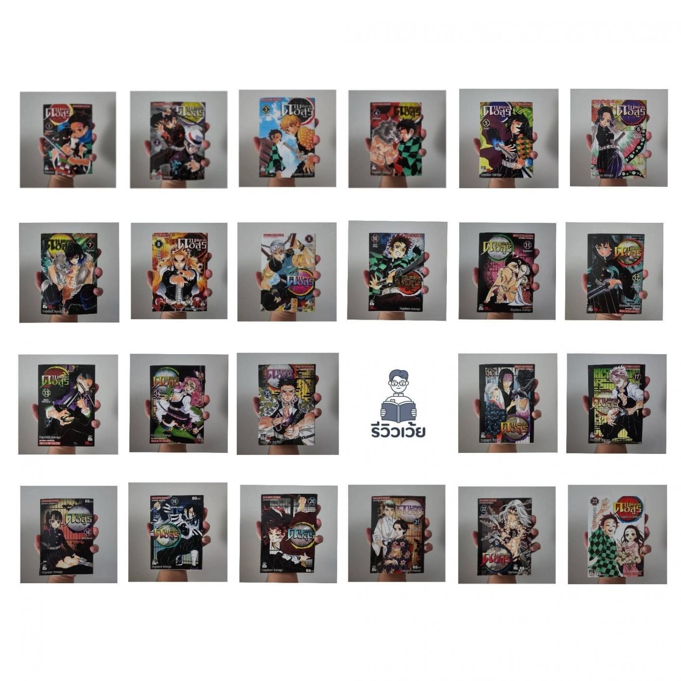 "Kimetsu no Yaiba" 1-23 เล่มที่ 1-23 ว่าด้วยเรื่องราวของ "คามาโดะ ทันจิโร่" เด็กหนุ่มผู้กลายเป็นนักล่าอสูรหลังจากครอบครัวของตนถูกอสูรฆ่าตาย ยกเว้นเพียงน้องสาวที่ชื่อ "เนซึโกะ" เท่านั้นที่ได้กลายเป็นอสูรไป เขาจึงตั้งปณิธานว่าจะหาทางทำให้น้องสาวกลับมาเป็นมนุษย์ดังเดิมให้จงได้ และหนทางสู่การเป็นสมาชิกหน่วยพิฆาตอสูรจึงไดเริ่มต้นขึ้น และตลอดระยะเวลาของการต่อสู้เพื่อให้ได้น้องสาวกลับมา ทันจิโรและตัวละครอื่น ๆ ต้องเผชิญกับความท้าทายและการต่อสู่เพื่อเอาชยะเหล่าอสูรที่ยากจะเอาชนะ โดยเฉพาะเหล่าอสูรข้างขึ้นและราชาอสูรอย่างมุซัน