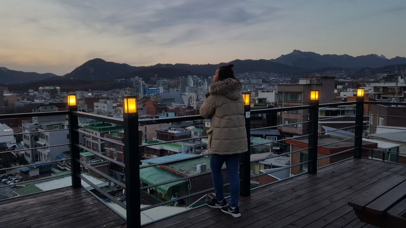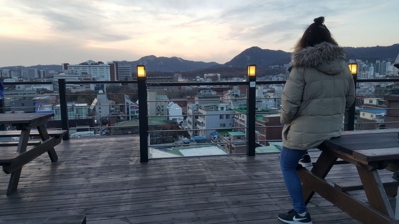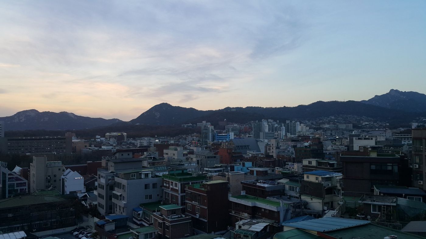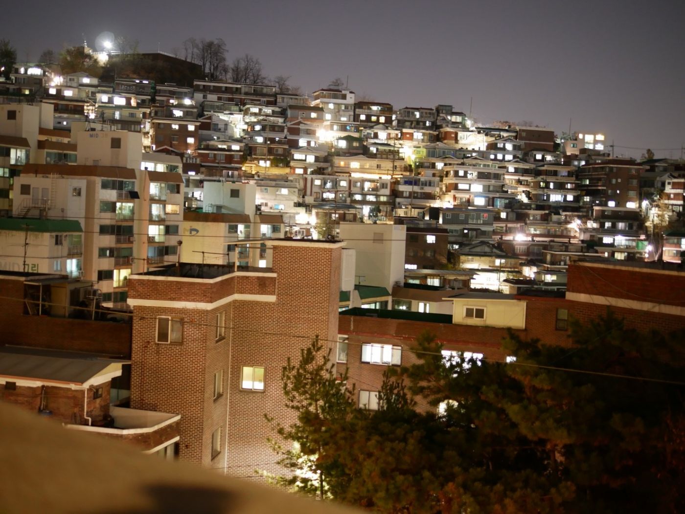 ออกจากร้าน ท้องฟ้าก็มืดพอดี เดินต่อขึ้นไปบนเขา ชมหมู่บ้านอีฮวา กับวิวเมืองยามค่ำคืน ลัดเลาะกำแพงเมือง สุดทางที่ทงแดมุนพอดี