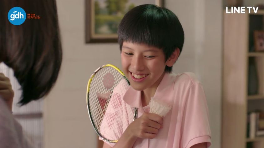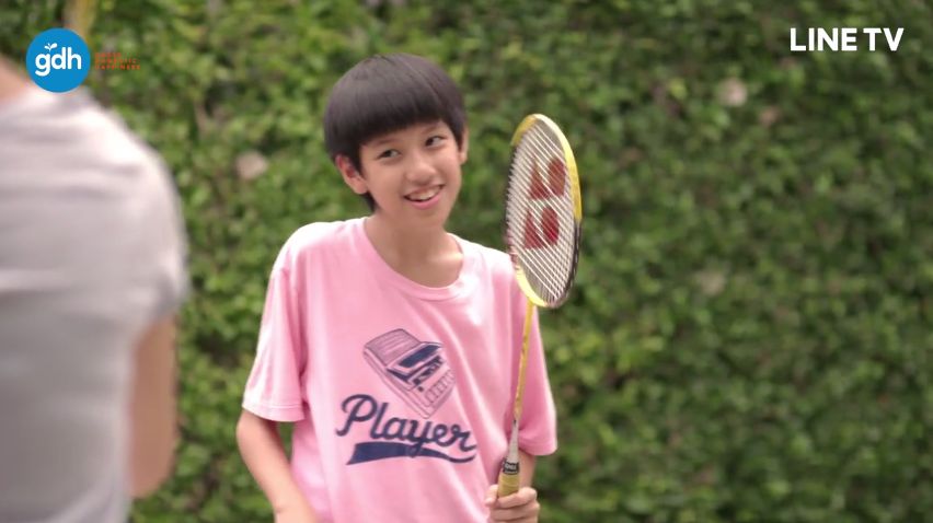 เวลาไปซ้อมหรือลงแข่งก็ต้องใส่เสื้อสำหรับเล่นแบด สีชมพูสดใสเห็นมาแต่ไกลทั้งพี่ยิมและน้องโด่ง
