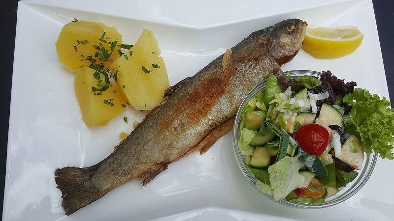 ปลาเทราต์ย่างเกลือก็อร่อย สั่ง 3 จานกันเลยทีเดียว โลมาชอบตรงที่มีสลัดให้ด้วย มาเป็นชามเลย:)