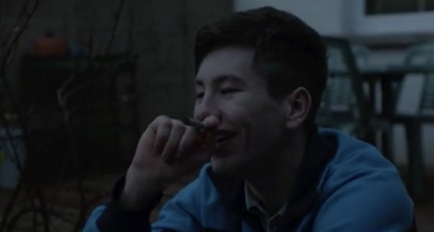 เด็กหนุ่มหัวเราะชอบใจ สูบบุหรี่ในมือต่อ ขณะแกล้งทำเสียงเห่าหอนไปตามสัตว์หลังบ้าน