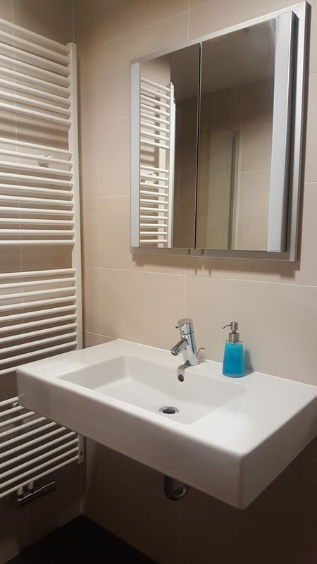 อ่างล่างหน้า กระจกส่องหน้าก็เรียบง่าย