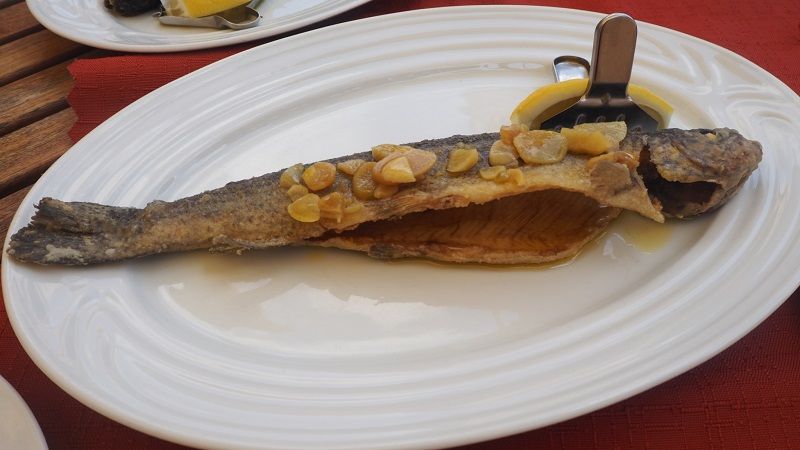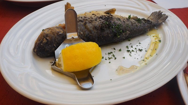 อาหารที่เราเลือกมี "พิซซ่ากับปลาเทราต์ย่าง 2 แบบ"