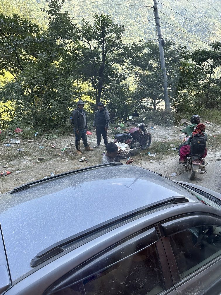 เนื่องจากช่วงที่เราไปเป็นช่วงเทศกาล Dashain ของเนปาลพอดี ทำให้การจราจรติดขัดมาก ทั้งนี้มีผู้มองเห็นโอกาสทางการค้า มีการขายมะพร้าว แตงกวา สินค้าจิปาถะระหว่างรอรถเคลื่อนตัวตลอดเส้นทางเลย สุดยอดเลยเนอะ