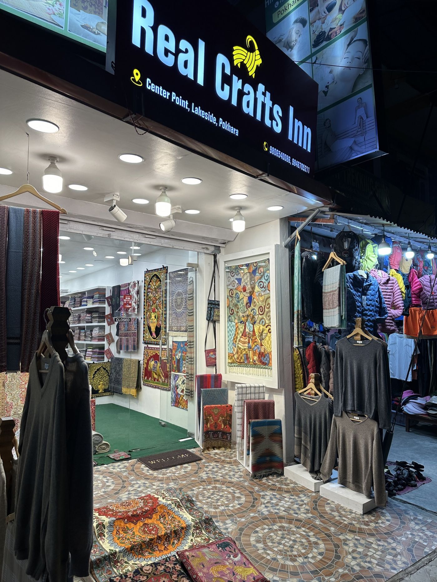 โดยส่วนตัวเราชอบบรรยากาศเมือง Pokhara มากกว่า Kathmandu หลายขุมเลย ที่นี่ให้ความรู้สึกชิล เดินได้เรื่อยๆ ของสวยๆเยอะมาก โดยเฉพาะกลุ่มผ้าทอ งานปักนี่สะใจมาก เรานี่ยืนมองแบบน้ำลายไหลหลายร้านเลย คืองานประดิษฐ์แบบนี้มันทำให้ใจระทวย อยากสอยมาเป็นของตนให้จงได้ แต่ก็ได้แต่อดใจไว้เพราะเราแบกขึ้นไปไม่ได้ เดี๋ยวไว้กลับลงมาจะมาดูให้หนำใจไปเลย