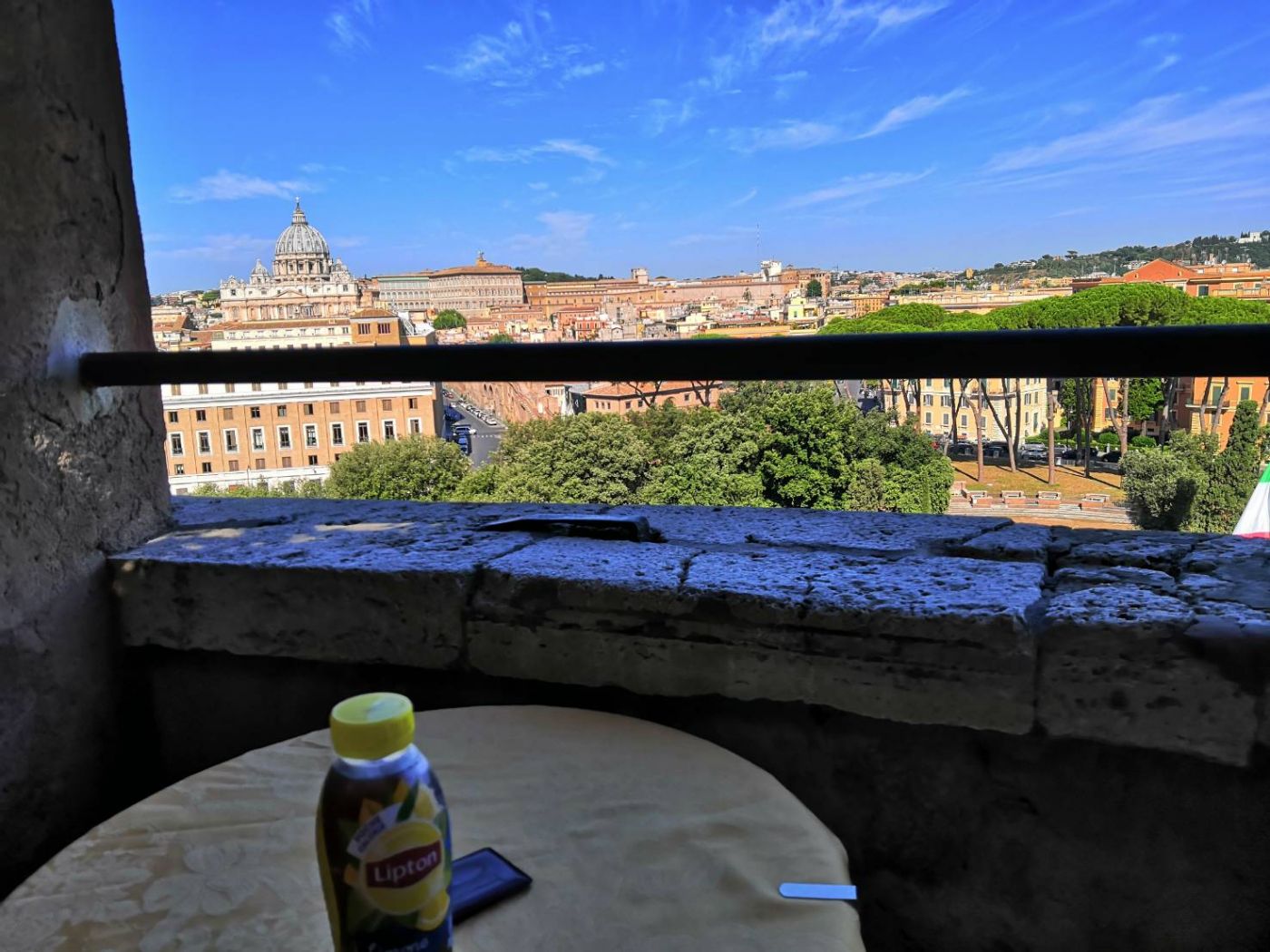 เราเดินไล่ปีนขึ้นไปจนถึงบนสุดจะสามารถเห็นวิวกรุงโรมและวาติกันได้แบบพาโนราม่า ก่อนถึงดาดฟ้ามีที่ให้นั่งแวะจิบน้ำดูวิวด้วยนะคะดีงามสุดๆเราก็กินน้ำ3eur กินวิวร้อยล้านไปสิคะ