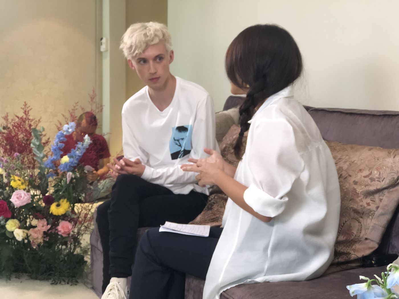 หลังจากการฟังเพลงของ Lisenting Session ในวันแรกจบลง วันที่สองซึ่งเป็นวันที่เปิดให้สื่อต่างๆสัมภาษณ์ Troye และเป็นวันที่ผมจะได้คุยแบบนังโซฟาเดียวกับ Troye แค่คิดถึงก็ดีใจตัวสั่นละครับ วันที่สัมภาษณ์เป็นวันที่ผมตื่นเต้นจนเกร็งไปหมด ทั้งได้เห็น Troye ตัวเป็นๆและใกล้ๆ ตัวจริง Troye สูงมากครับ (หรือจริงๆ กูเตี้ยวะ) ผอมมากด้วย วันนั้นเค้าดูค่อนข้างเหนื่อย (เราได้เป็นคิวสัมภาษณ์เป็นคิวสุดท้ายของวัน) แต่ก็ยังยิ้ม ยังมีเอเนอจีอยู่ ตัวจริง Troye เฟรนลี่มากกกก ขอถ่ายรูปก็ชวนคุยถามเป็นยังไงบ้าง เดินทางเหนื่อยไหม กลับวันไหน และตอนสัมภาษณ์ก็พยายามตอบให้ยาวหาเรื่องมาเล่า ตั้งใจฟังและยิ้มตลอด