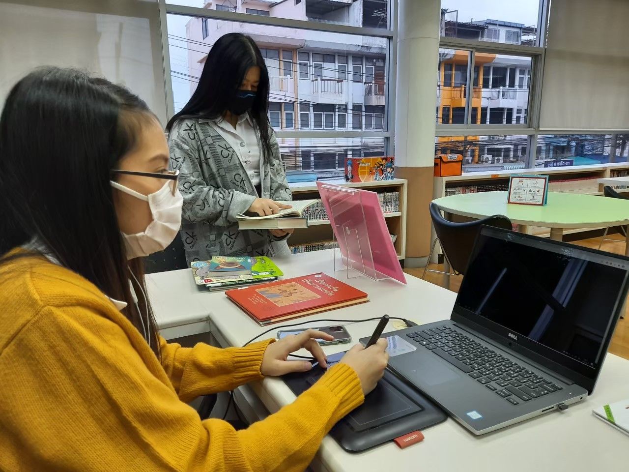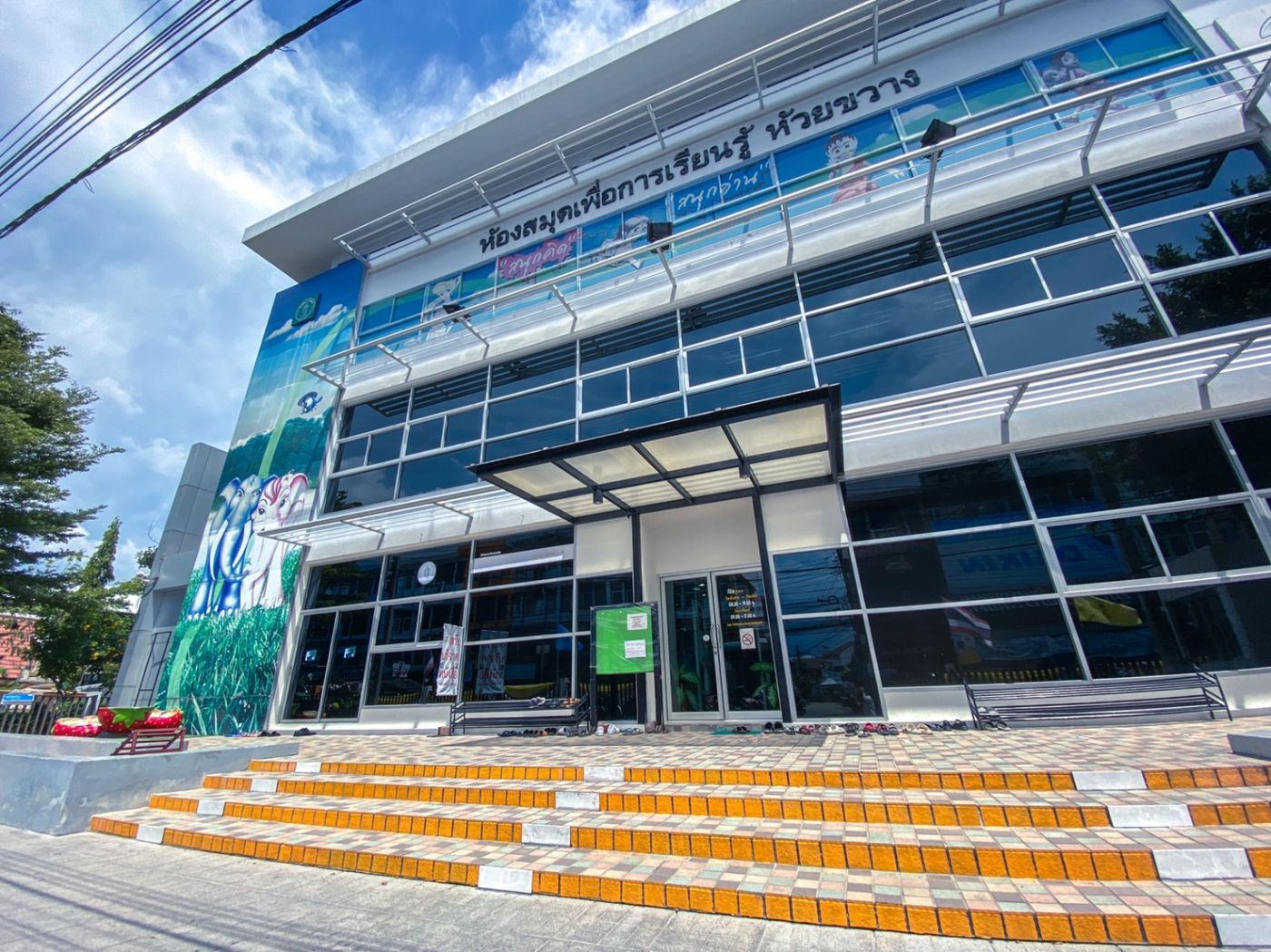 สถานที่ที่อนุเคราะห์พวกเราทั้งสามคนก็คือ ‘ห้องสมุดเพื่อการเรียนรู้ ห้วยขวาง’ ห้องสมุดในเครือสำนักวัฒนธรรม กีฬา และการท่องเที่ยว กรุงเทพมหานคร