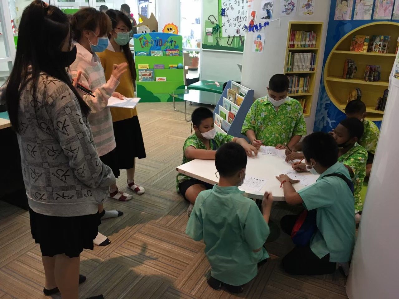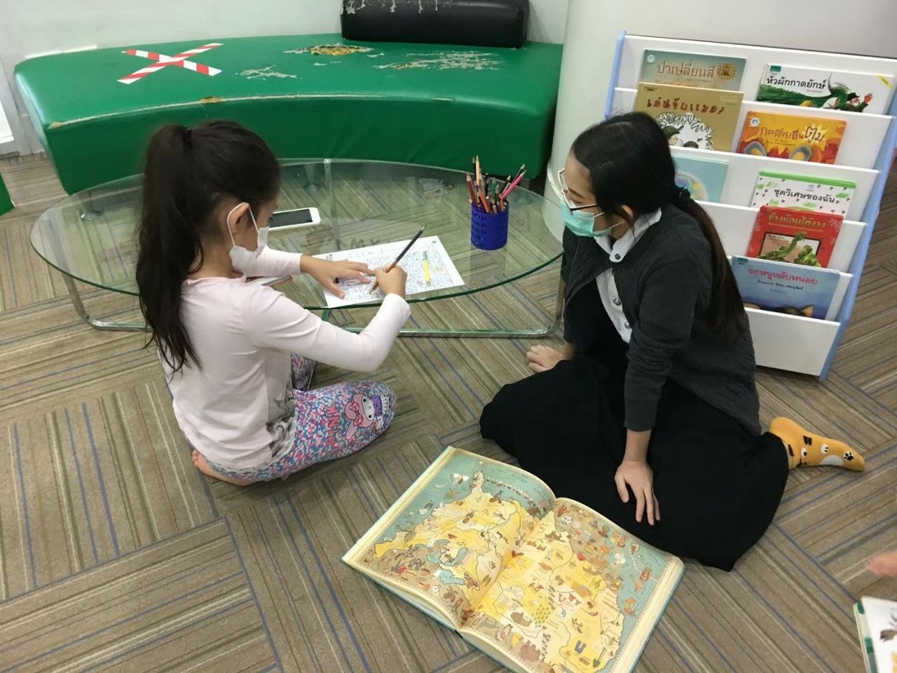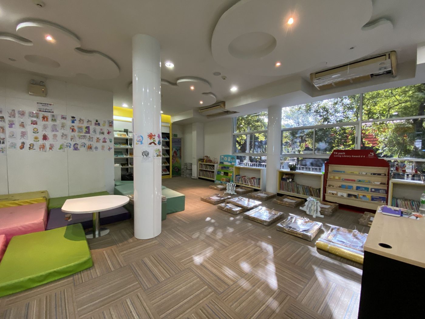 หน้าที่หลักที่นิสิตฝึกงานจากเอกวรรณกรรมสำหรับเด็กได้รับมอบหมายคือการ ‘จัดกิจกรรมสำหรับเด็ก’ ดังนั้นห้องทำงานหลักของพวกเราคือห้อง kid’s corner ที่อยู่ชั้นหนึ่งนั่นเอง