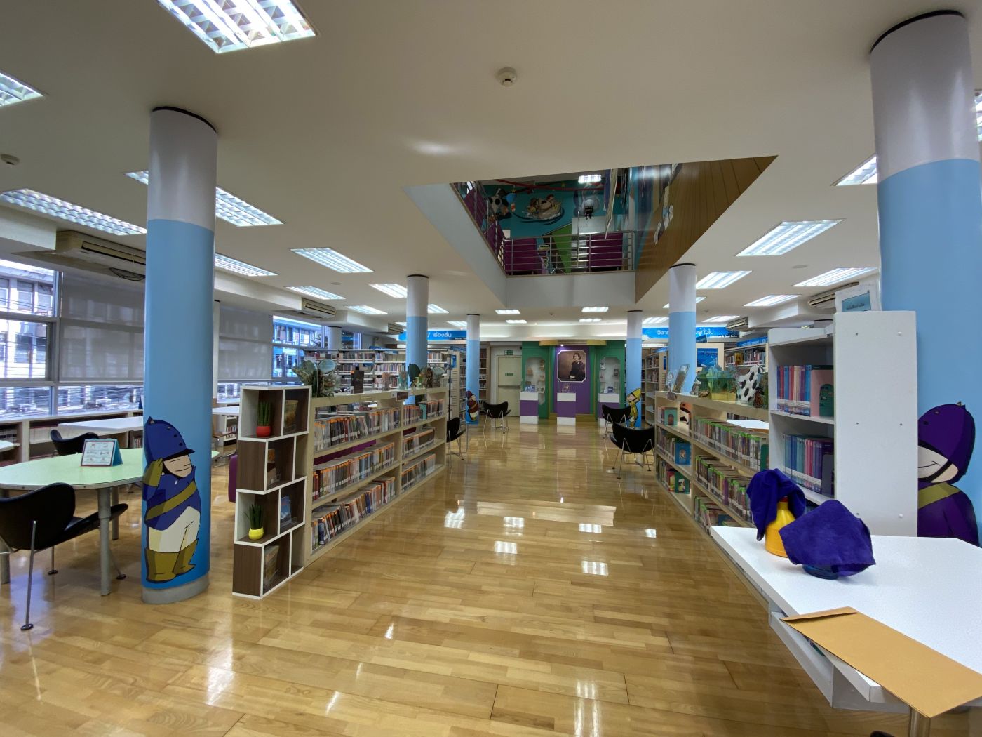 เป็นห้องสมุดที่มี 3 ชั้น ชั้นแรก เป็นที่ตั้งของโต๊ะประชาสัมพันธ์ ห้องเด็ก(kid’s corner) มุมหนังสือพิมพ์-นิตยาสาร และมุมหนังสือใหม่ของทั้งเยาวชนและหมวดทั่วไป ชั้นสองเป็นชั้นของหนังสือความรู้ทั่วไป นวนิยายเรื่องสั้นทั้งใหม่และเก่า และหนังสือการ์ตูนบางส่วน และในชั้นถัดไป ชั้นสามจะให้บริการคอมพิวเตอร์ ห้องฉายภาพยนตร์ สื่อดีวีดี และหนังสือการ์ตูนความรู้สำหรับเด็ก โดยรวมแล้วเป็นห้องสมุดที่มีจุดเด่นด้านหนังสือการ์ตูน