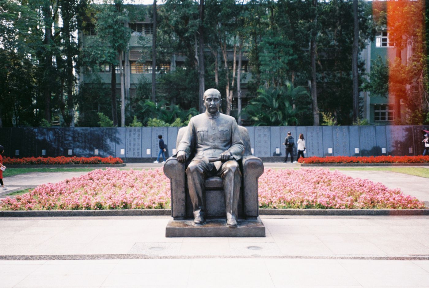 แต่พอไปถึงกลับต้องตะลึงยิ่งกว่า Sun Yat-Sen เพราะคนเยอะกว่ามาก ๆ ๆ ๆ มีทุกชาติเลย  แลนด็มาร์คก็แบบนี้แหละเนอะ  แถมวันนี้อากาศดีอีกต่างหา  อันที่จริงก็ไม่น่าแปลกใจเลยสักนิด  เราเคยมาที่นี่แล้วครั้งนึงแต่ก็ไม่ได้ติดใจอะไรเลย  คราวนี้ไหน ๆ ก็มาแล้วเลยใช้กล้องฟิล์ถ่ายรูปสักหน่อย  เลยกดชัตเตอร์ไปสองสามรูป  จนถึงตอนนั้นก็เริ่มเพลียแล้ว  ร่างกายเริ่มประท้วงเพราะนอนไม่พอ  ทหารอะไรนั่นช่างมันเถิด  จึงตัดสินใจหาชานมไข่มุกกินดีกว่า