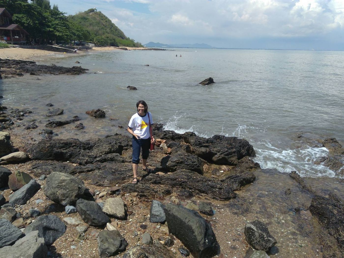 แนวโขดหินมีหอยตัวเล็กๆ อยู่เต็มไปหมดเลย วิวสวยด้วย พอดูจากข้างล่างมองออกไปก็ยิ่งสวย