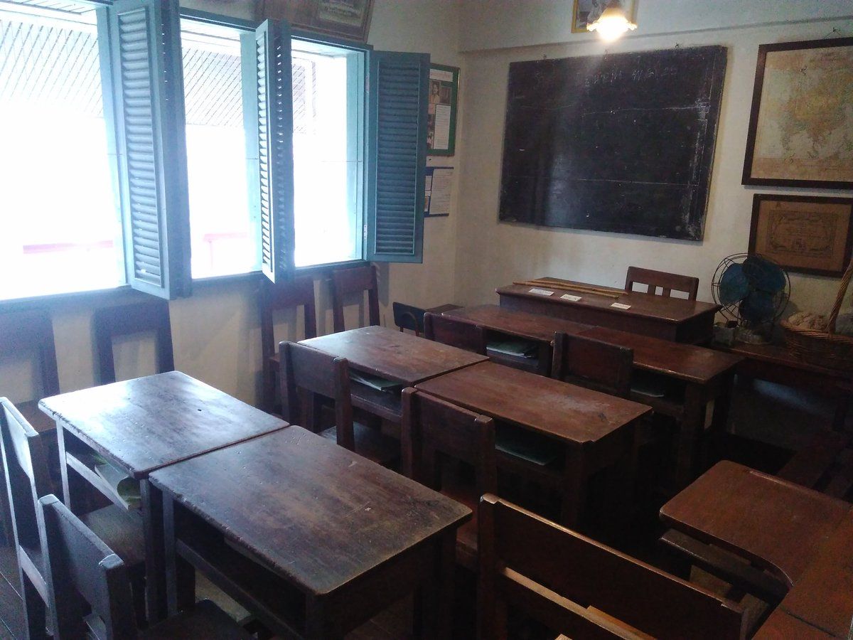 พอขึ้นไปบนชั้นสามก็จะมีห้องเรียน เป็นโต๊ะไม้กับกระดานดำ