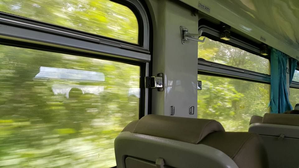 มาเข้าเรื่องกันดีกว่า ขึ้นรถไฟเที่ยว 8.50น. คับ รถไฟตู้ที่ผมนั่งมาผมสังเกต ผู้โดยสารส่วนใหญ่ประมาณ 80% จะเป็นชาวต่างชาติ (พี่ฝรั่งชอบนั่งรถไฟกันมาก) ผมเลือกนั่งติดหน้าต่างเพราะชอบดูวิว วันนี้สบายหน่อยที่นั่งข้างๆของผมว่าง นั่งเล่นนอนเล่นสองที่เลยแจ่มแมว รถไฟออกเดินทางถึงประมาณลำพูน วันนี้แดดแรงคับ ความบรรลัยเกิด ที่นั่งผมกระจกไม่มีม่าน (ไม่มีอยู่คนเดียวทั้งโบกี้ เชดโด้) ได้อาบแดดยามเช้ารับวิตามิน D กันเลยทีเดียว ก็เลยขยับมานั่งเก้าอี้ข้างๆริมทางเดินแทน ซักพักพนักงานมาเสิร์ฟน้ำ ผมก็เอาเลยสิคับ ถามพนักงานว่าทำไมที่นั่งผมไม่มีม่านคับ แดดมันส่อง ร้อนมาก (เหมือนโดนข้าวสารเสก 555+) พนักงานบอก ก็เมื่อวานไม่มีแดดอ่ะค่ะ ฝรั่งก็ชอบดูวิว (เดี๋ยวๆ ผมคนไทยไม่ชอบร้อนนน) พนักงานก็ดีที่ยังเดินไปหาม่านมาติดให้ ไม่รู้เอาสำรองในที่เก็บของมาหรือเอาจากล๊อคที่นั่งไหน ก็โอเคขึ้นมาหน่อยคับ เลยหลับช่วงลำปางไปชม.กว่าๆได้