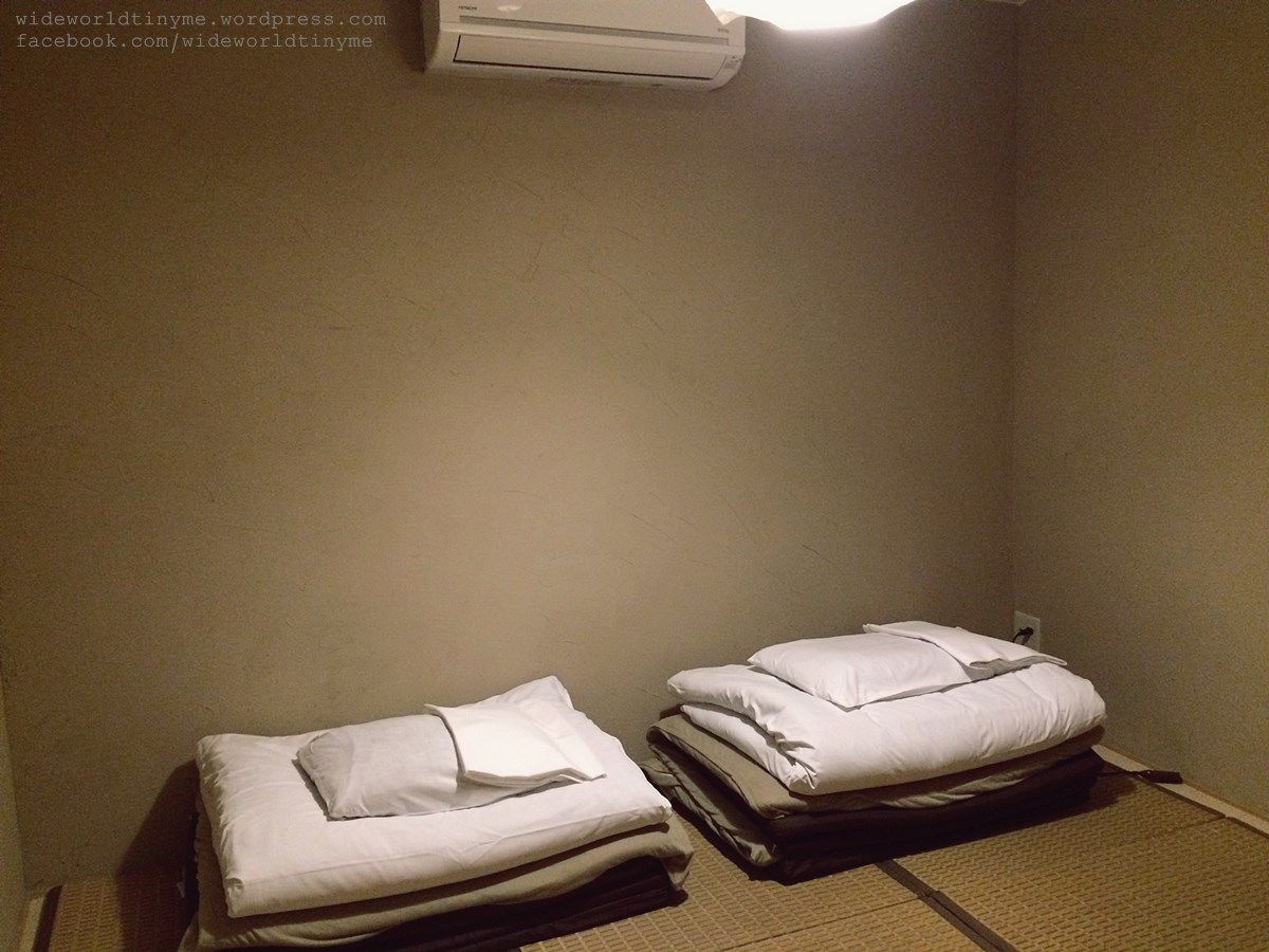 ฉันยืนมองนาฬิกาอีกทีเพื่อให้แน่ใจว่านี่คือเวลา 13.05 จริงๆ พร้อมขยับร่มในมือและอ่านป้ายข้อความที่แขวนไว้หน้า Guest House Kaine ที่พวกเราสี่คนจะมาพักคืนนี้ ป้ายบอกเราว่าเขาหยุดพักช่วง 13.00-15.00 ซึ่งแน่นอนการมาช้าไป 5 นาทีย่อมไม่มีผลจะไปต่อรองอะไรกับความเที่ยงตรงของคนญี่ปุ่นได้ พวกเราสี่คนมองหน้ากัน แล้วก็คิดว่าจะทำอย่างไรดีนะกับกระเป๋าที่แบกมาจากสนามบิน Fukuoka แล้วยังสายฝนที่ตกปรอยๆที่ไม่มีทีท่าว่าจะหยุด