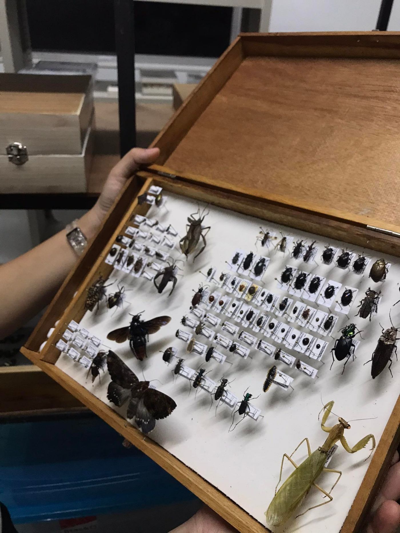 หลังจากมาสำรวจพื้นที่แล้ว เราก็กลับไปที่มูลนิธิเพื่อนเตรียมของต่าง ๆ สำหรับกิจกรรมค่ายในวันรุ่งขึ้นค่ะ แต่ก่อนที่เราจะกลับเข้าที่พัก เราก็ได้มาดูปลาที่พี่ ๆ มูลนิธิเค้าเลี้ยงเอาไว้เพื่อทำงานวิจัย และสิ่งที่ทำให้เราประทับใจมากคือเราได้ไปดูห้องแลปแมลง และได้ฟังพี่โอ๊คผู้เชี่ยวชาญเรื่องแมลงเป็นอย่างมากพาทัวร์ห้องแลปค่ะ ซึ่งเป็นสิ่งที่เราชอบมากเพราะไม่คิดว่าชีวิตนี้จะได้มาเห็นอะไรแบบนี้ และได้เจอคนที่เก่งมากที่สุดคนหนึ่งเลยค่ะ ตื่นเต้นสุด ๆ ซึ่งเราก็ได้เข้าไปดูแมลงต่าง ๆ มากมายที่พี่เค้าสต๊าฟเอาไว้ เราอึ้งมากเลยค่ะ เพราะมันมีเยอะมากกกกกกก แล้วพี่เค้าก็คือจำได้ทุกตัว ทุกสายพันธุ์และอธิบายได้กระจ่างชัดเจนมาก ๆ เราฟังเพลินมากเลยค่ะ