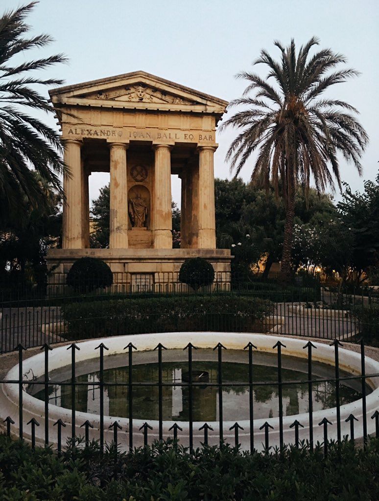 จุดเด่นของสวน Lower Barrakka อยู่ที่ สถาปัตยกรรมคลาสสิคที่เป็นที่ตั้งของอนุสาวรีย์ของ Sir Alexander Bell นักการทูต,นักการเมือง และนายทหาร สร้างขึ้นในปีค.ศ.1810 เขาเป็นคนสำคัญอีกคนหนึ่งของมอลต้าเพราะเขาคือผู้นำชาวมัลทีสก่อจลาจลต่อต้านกองทัพฝรั่งเศสในปี 1798 ซึ่งสามารถขับไล่ฝรั่งเศสออกไปได้สำเร็จ หลังจากนั้นจักรวรรดิอังกฤษจึงเข้ามาปกครองมอลต้าแทน โดยมี Alexander Ball เป็นผู้ก่อตั้งคณะรัฐบาล