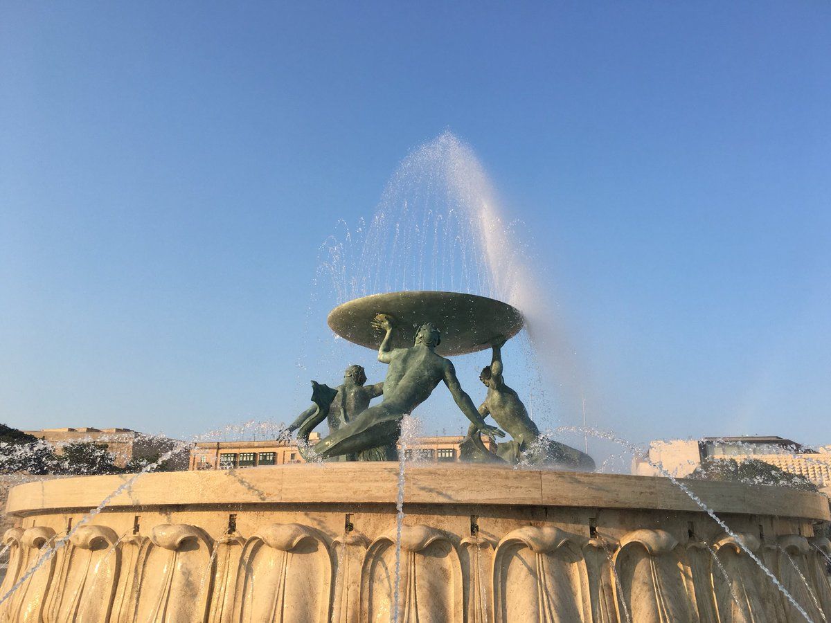 คงเป็นเพราะเรามาวันธรรมดา น้ำพุไตรตันอีกแลนด์มาร์คสำคัญที่ตั้งอยู่ตรงประตูเมืองเลยไม่เปิดน้ำ น้ำพุไตรตันเพิ่งได้รับการบูรณะไปไม่นานในช่วงที่วาเลตต้าได้เป็นเมืองหลวงแห่งวัฒนธรรมของยุโรปประจำปี 2018 ตัวน้ำพุเป็นการร่วมมือกันสร้างในปี ค.ศ. 1959 ระหว่าง Victor Anastasi ผู้ออกแบบ กับ Vincent Apap ประติมากร น้ำพุนี้ยังสื่อความหมายได้อีกว่า ไตรตันที่กำลังยกจานขึ้นเหนือหัว หมายถึงประเทศมอลต้าที่เป็นเกาะตั้งอยู่ในทะเลและมีความเกี่ยวข้องกับทะเลมายาวนาน