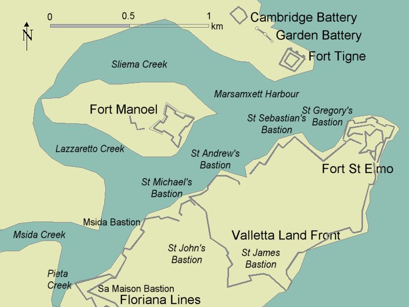 และในฝั่ง Three Cities เองก็คือเป็นฝั่งที่เหล่าอัศวินใช้ตั้งฐานทัพ ต่อสู้กับกองทัพออตโตมัน ในศึกครั้งนั้นก่อนที่ออตโตมันพ่ายแพ้แล้วยอมถอนทัพกลับไป เป็นผลให้หลังจากสงครามครั้งนี้ฝั่งมอลต้าสูญเสียทั้งกำลังอัศวิน พลเรือนไปมากมาย