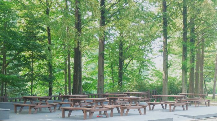 กลับมาอ่านรีวิวเขาบอกว่าแนะนำให้มาช่วงใบไม้เปลี่ยนสีจะสวยมากพวกต้นไม้ตามทางเปลี่ยนเป็นสีส้มแดงทั้งภูเขาประมาณนั้นแต่เรามาในฤดูร้อนต้นไม้ก็ยังเขียวชอุ่มอยู่ก็สวยไปอีกแบบ เดินดูสัตว์มาถึงบ่ายสามกว่าก็มานั่งพักขารับลมโชยอ่อนพอให้เย็นตามซอกคอ