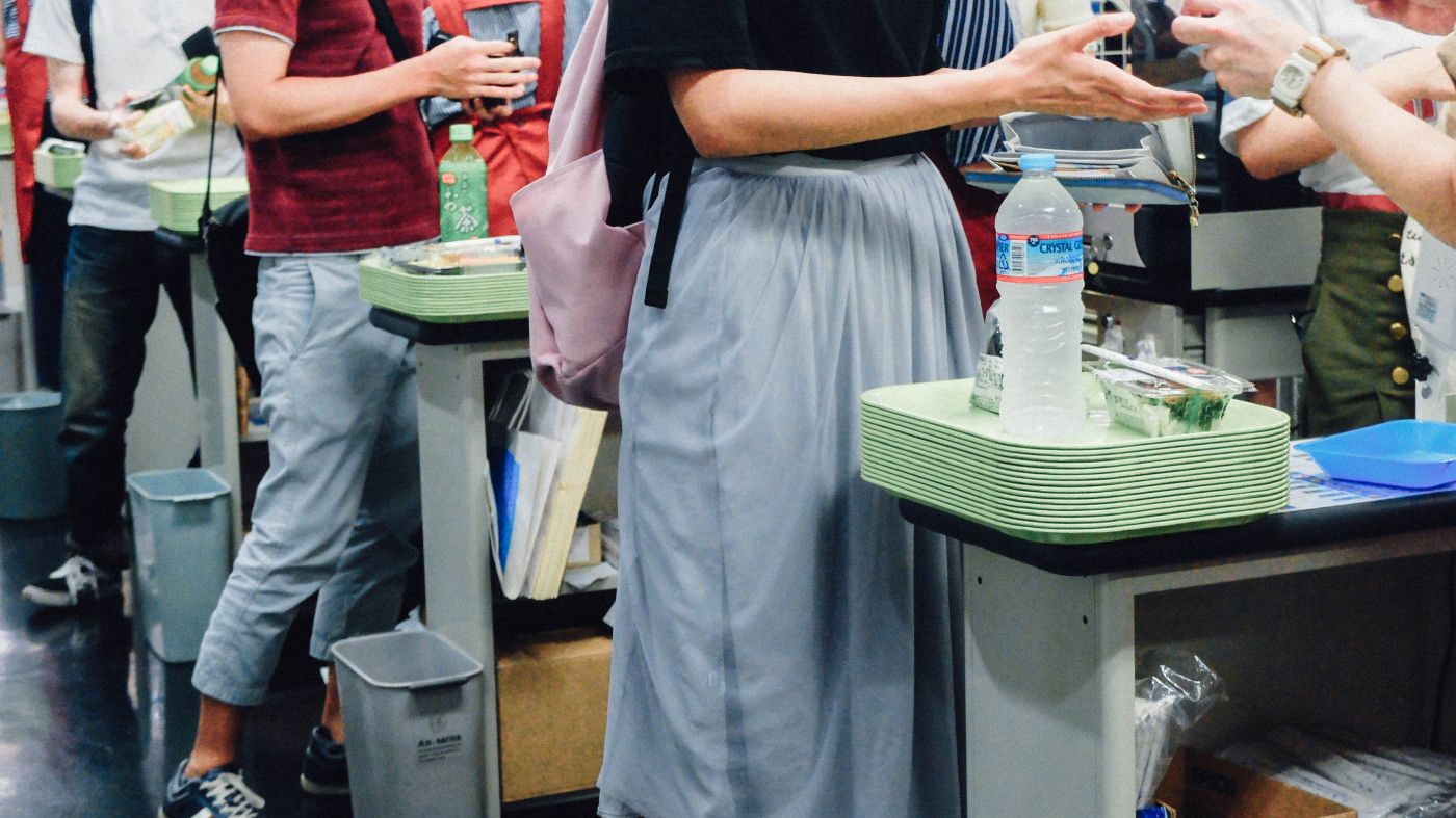 พวกเราเจอโอคุซังนักศึกษาชาวญี่ปุ่นชั้นปีที่4 จากคำแนะนำของstaffที่ดูแลพวกเราอีกที เพื่อมาช่วยเราหาอะไรกินในตอนกลางวันช่วงที่มหาวิทยาลัยดูจะว้าวุ่นที่สุดกับ1ชั่วโมงที่ทำยังไงก็ได้ให้ท้องตัวเองอิ่มและพร้อมเรียนต่อในตอนบ่าย เดินสวนนักศึกษามากมายที่ต่างเดินบ้าง กึ่งวิ่งบ้าง ขี่จักรยานบ้าง และสักพักเราก็มาหยุดอยู่ที่โรงอาหาร เก้าอี้และโต๊ะทุกตัวถูกจับจองอยู่ก่อนแล้วมองซ้ายมองขวาก็ไม่มีทีท่าว่าจะมีใครลุกในเร็วๆนี้ โอคุซังจึงเปลี่ยนเป้าหมายพาเราไปยังร้านสะดวกซื้อฝั่งตรงข้ามแทน ภายในจำนวนคนก็ไม่ต่างจากโรงอาหารมากนัก ข้าวกล่อง ข้าวปั้น บะหมี่กึ่งสำเร็จรูปวางเรียงรายอยู่เต็มตู้แช่และชั้นวางของ บ่งบอกถึงการได้รับความนิยมในหมู่นักศึกษาเป็นอย่างมาก
