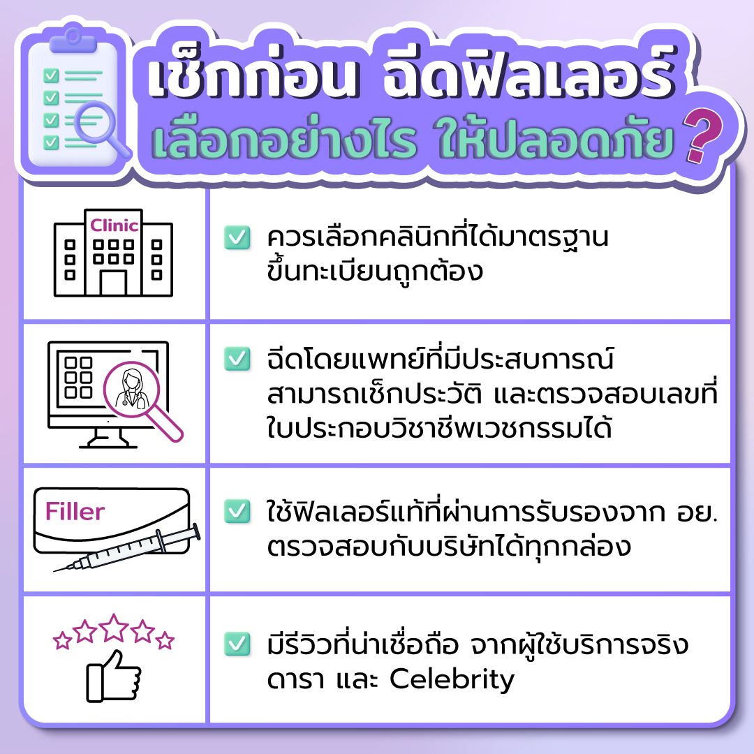 คนไข้สามารถตรวจสอบกล่องฟิลเลอร์ก่อนฉีดใต้ตาได้ และสามารถขอดูใบกำกับยาที่เป็นภาษาไทยจากแพทย์ได้