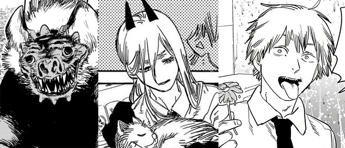 การสำรวจพัฒนาการของเด็นจิเองก็เป็นสิ่งที่เราชอบมากเหมือนกันเวลาอ่าน อาจารย์ฟูจิโมโตะได้แสดงพัฒนาการของเขาออกมาผ่านเป้าหมายในการใช้ชีวิตนี้ด้วยค่ะ จากตอนแรกที่ต้องการแค่ขนมปังทาแยม พัฒนามาเป็นการอยู่เพื่อได้จับหน้าอกสาว มาเป็นการจูบ มาเป็นหมาของคุณมาคิมะ แล้วก็เพื่อมาเป็นฮีโร่ ‘เชนซอว์แมน’ ผู้ที่ได้รับการยอมรับและยกย่องจากบรรดาประชาชน จนสุดท้าย เราก็คงจะได้รู้อีก ว่าต่อไปเป้าหมายของเด็นจิจะเป็นอะไรต่อไป ประเด็นนี้เราคิดว่าน่าจะต่อยอดได้เยอะเลยค่ะ