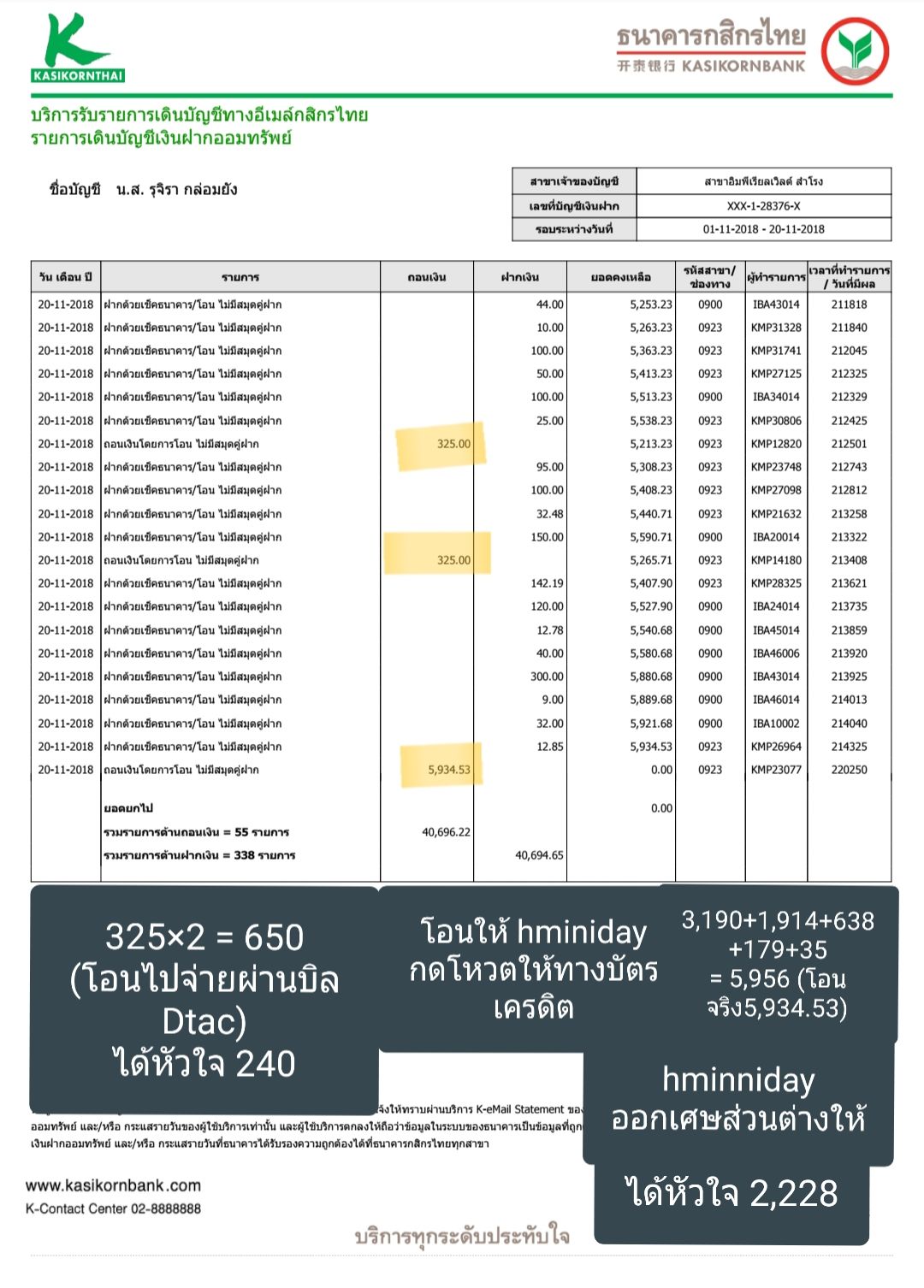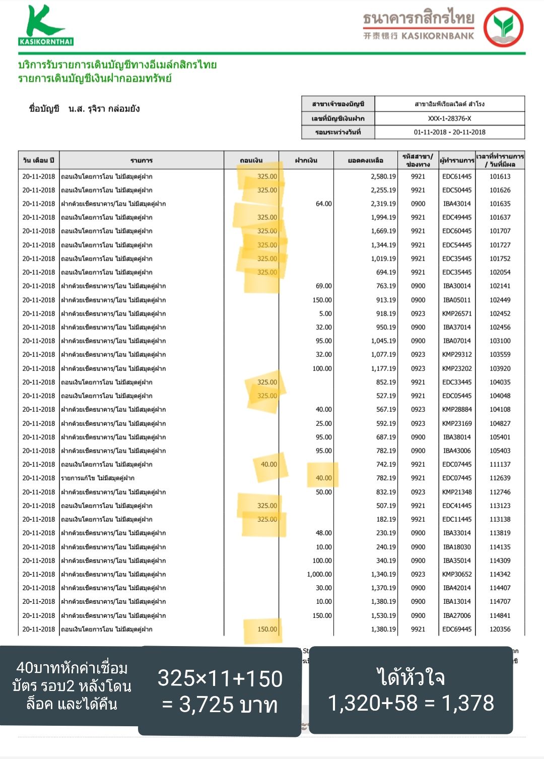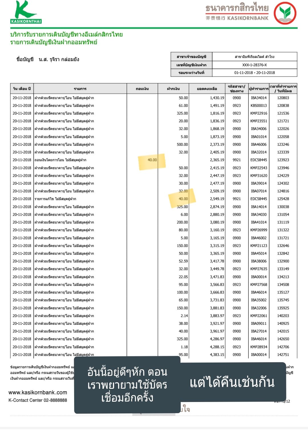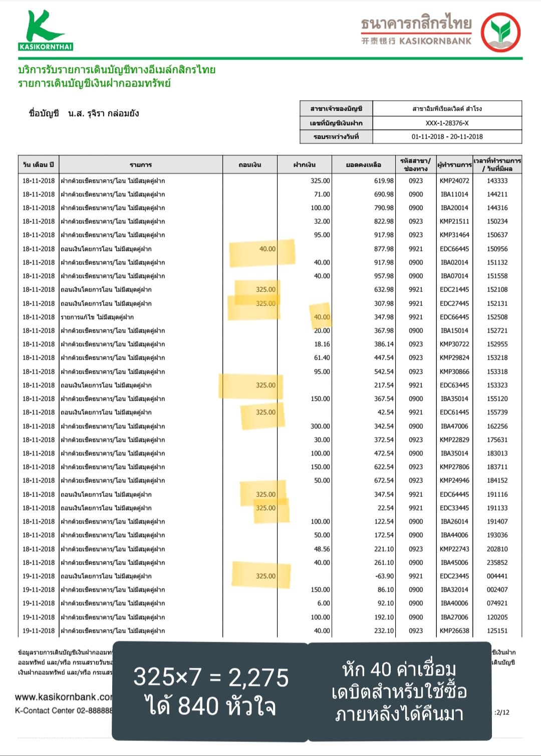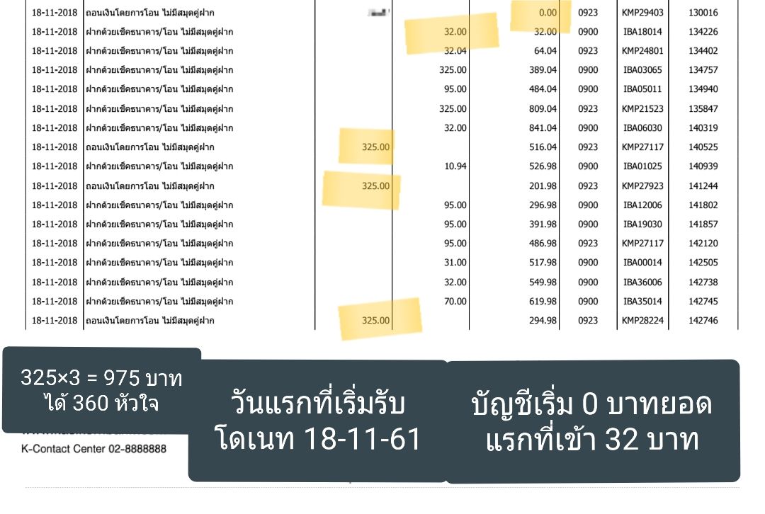 (ยอดสุทธิรวมอย่าไปดูนะคะ อันนั้นรวมยอดเงินของเราก่อนหน้าที่จะทำให้บัญชีเป็น 0 เป็นยอดตั้งแต่ต้นเดือนของเราก่อนจะมาวันที่ 18-11-61ค่ะ เดี๋ยวจะว่าทำไมเยอะกว่าที่รวมจริงๆ 55555)
