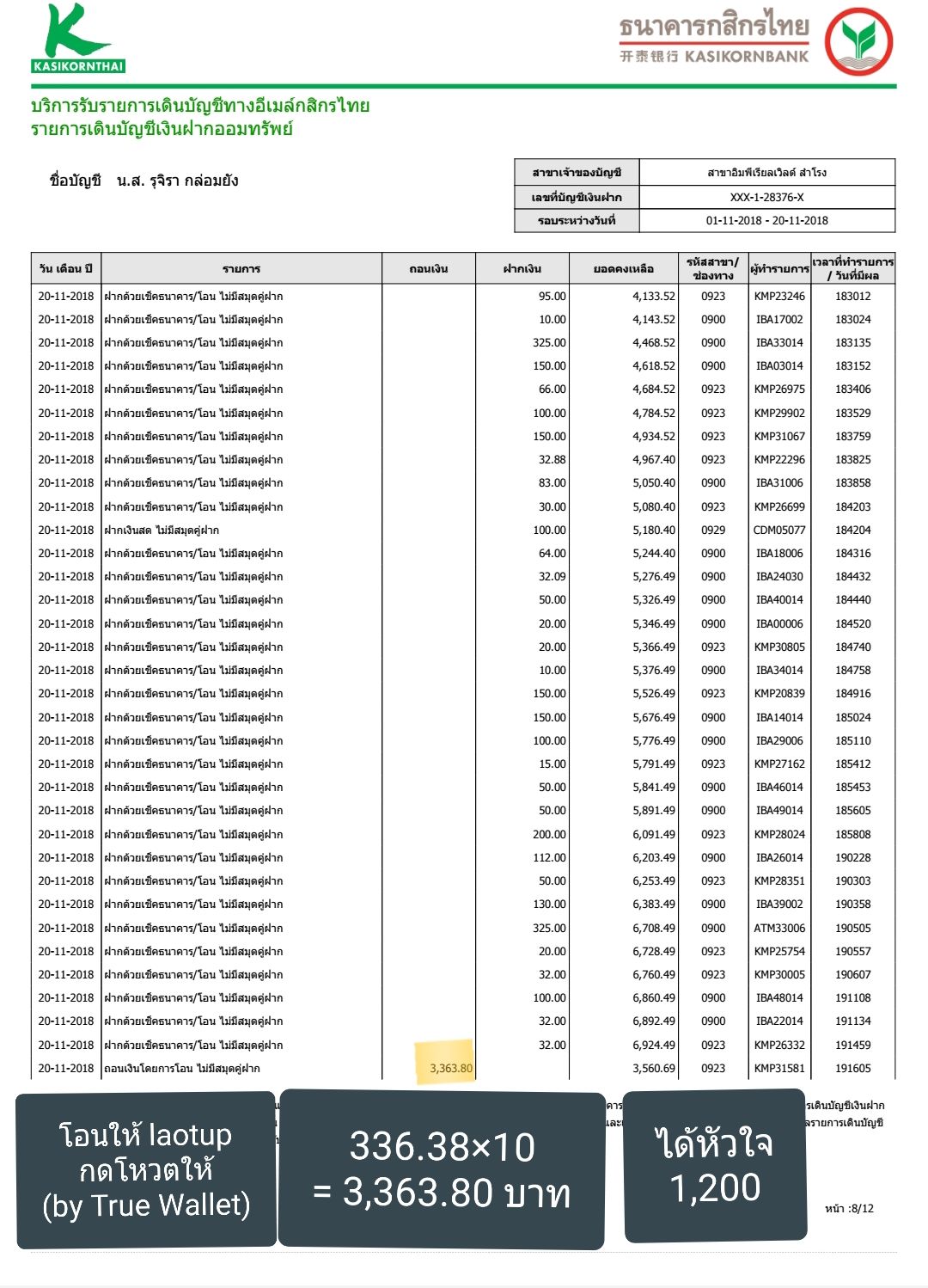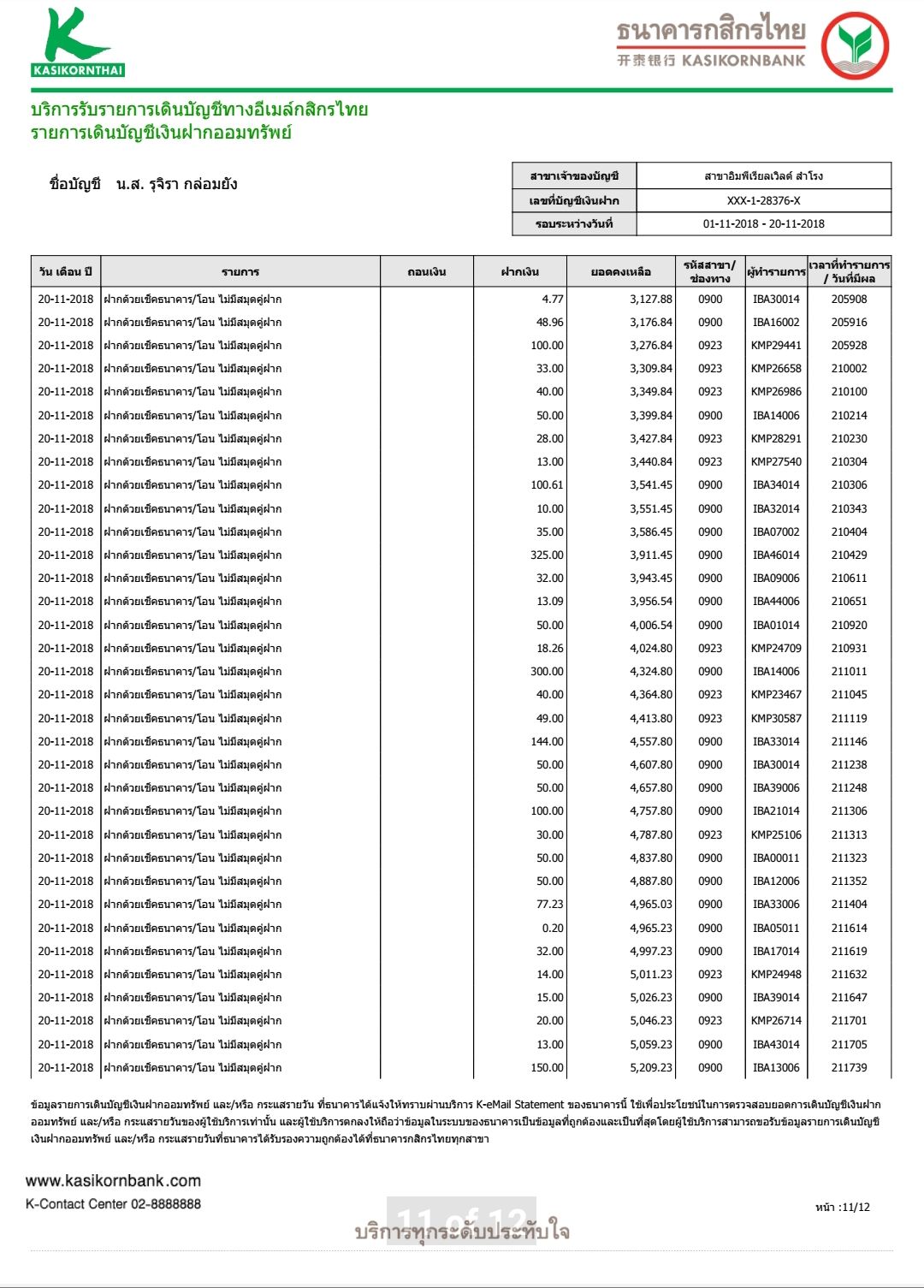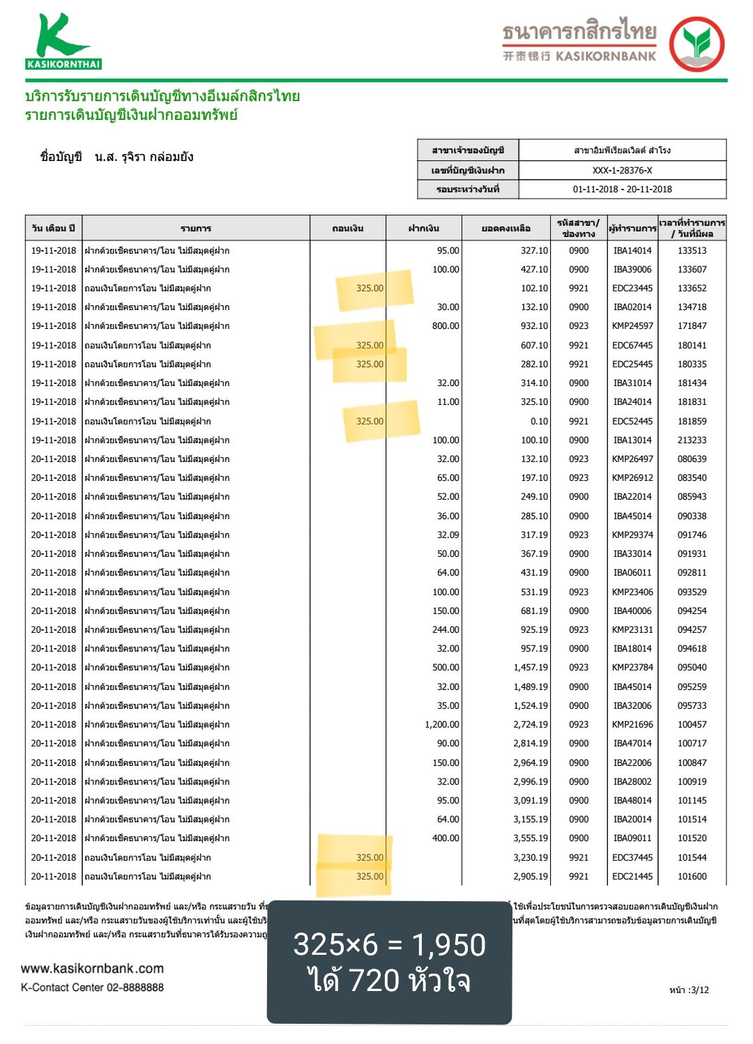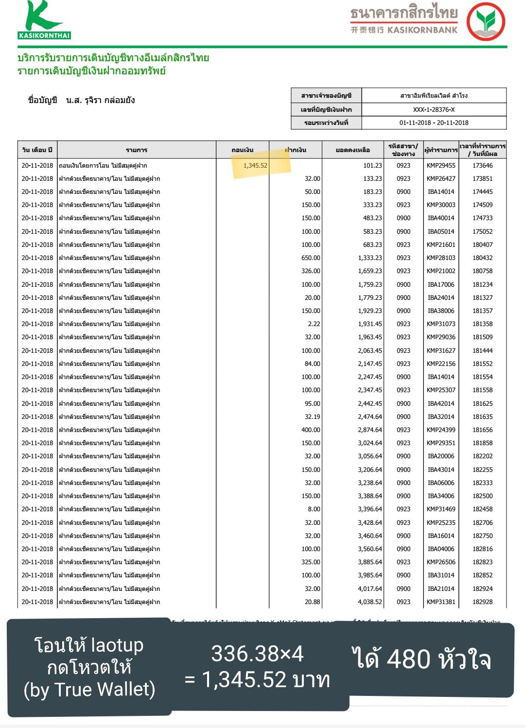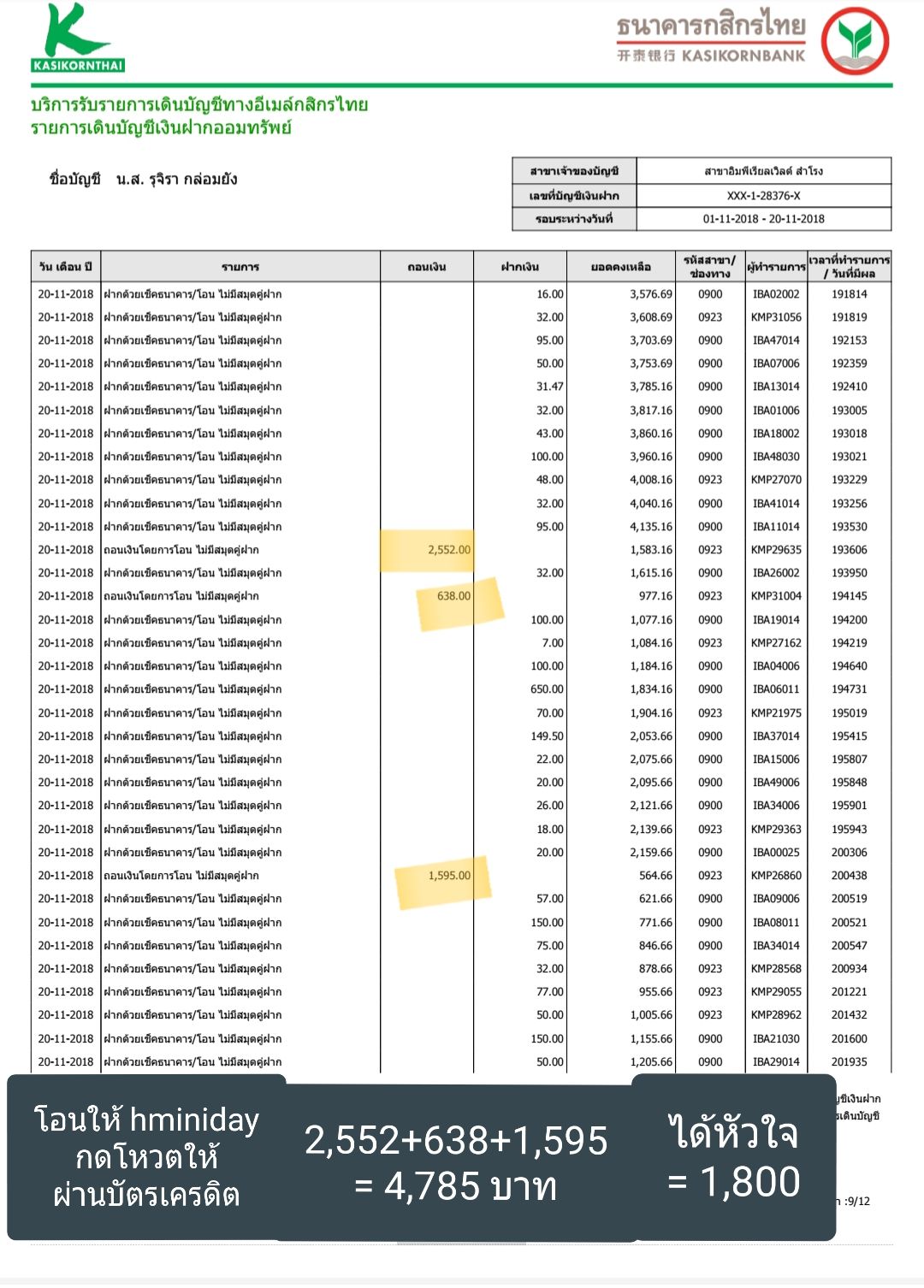 (ยอดสุทธิรวมอย่าไปดูนะคะ อันนั้นรวมยอดเงินของเราก่อนหน้าที่จะทำให้บัญชีเป็น 0 เป็นยอดตั้งแต่ต้นเดือนของเราก่อนจะมาวันที่ 18-11-61ค่ะ เดี๋ยวจะว่าทำไมเยอะกว่าที่รวมจริงๆ 55555)