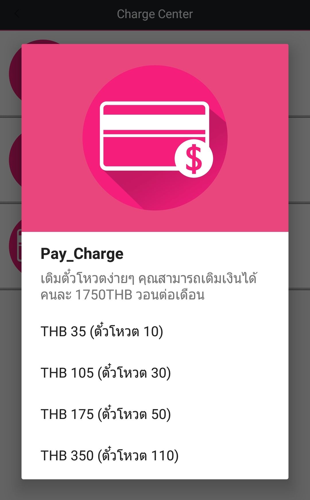 •         สำหรับ EXO ที่คิดว่าดูโฆษณาไม่เพียงพอต่อการได้รับ Ticket สามารถกดเลือกที่อันสุดท้าย (Pay_Charge) เพื่อใช้เงินในการซื้อ Ticket มาโหวตได้ค่ะ ตามภาพด้านล่างเลยนะคะ
