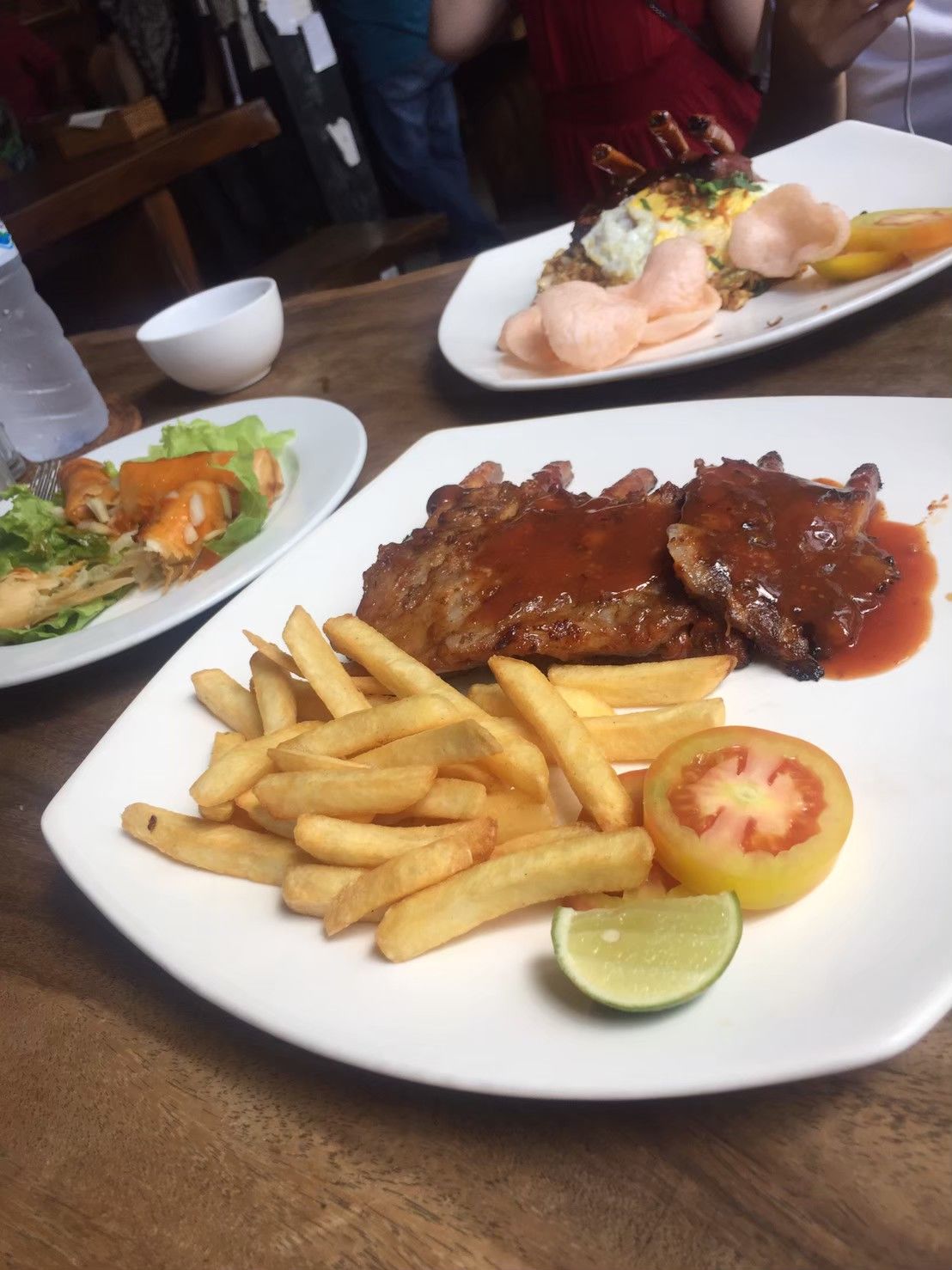 ระหว่างทางออกจากสนามบิน Denpasar เรามุ่งหน้าไปหาร้านอาหารใกล้ๆ ทันที ผมได้ถามคนขับรถเกี่ยวกับอาหารที่แนะนำมากินที่ บาหลี จากนั้นเขาก็พาเราไปทันที (ในใจแอบคิดว่าโดนหลอกหรือเปล่า)