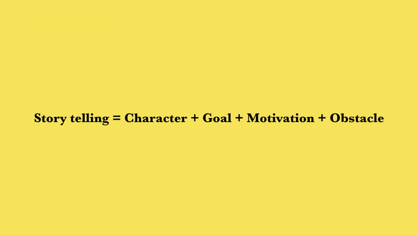 สมการการเล่าเรื่องนั้น ประกอบไปด้วย ตัวละคร + เป้าหมาย + แรงจูงใจ + อุปสรรค