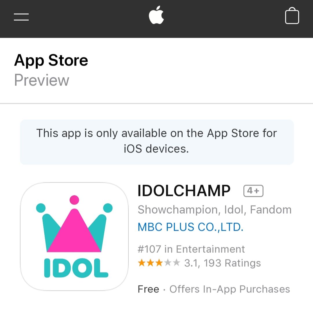 สามารถพิมพ์ชื่อแอป ค้นหาทาง App Store ได้เลยค่ะ พิมพ์ว่า IDOLCHAMP ก็จะขึ้นแล้วค่ะ