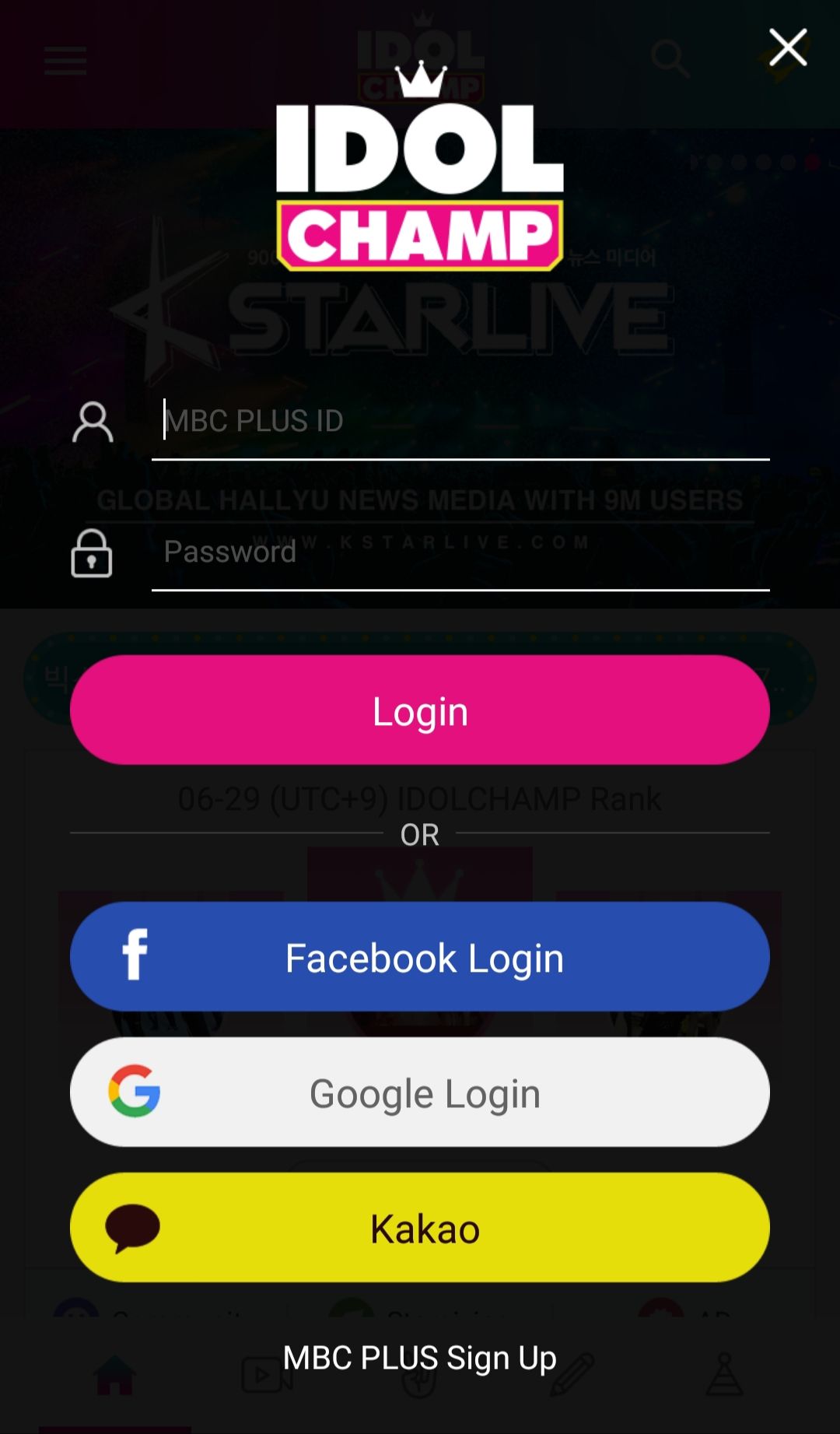 สำหรับแอป Idol Champ สามารถเข้าสู่ระบบได้ตามภาพนี้ค่ะ
