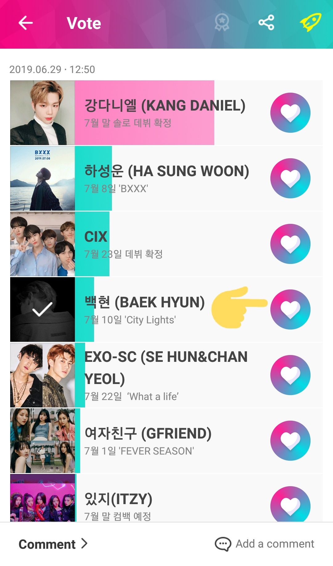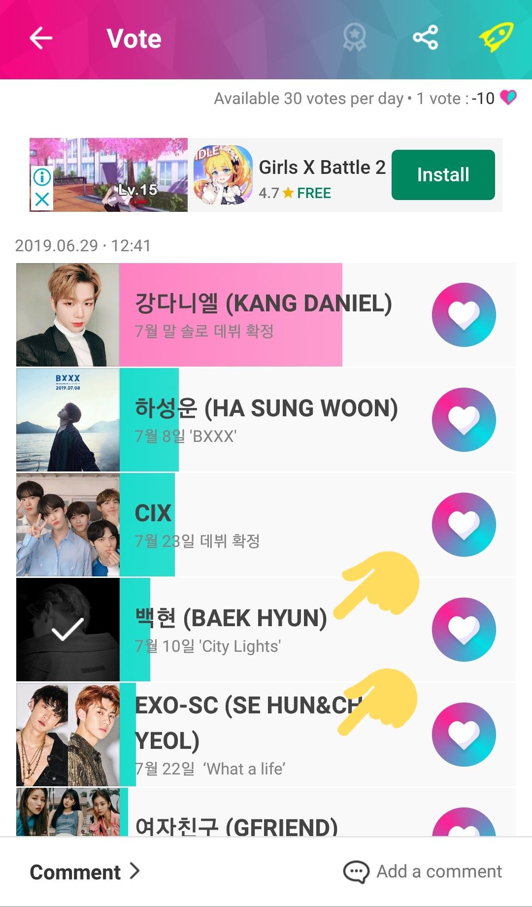 สามารถกดโหวตให้แบคฮยอน และชานยอลกับเซฮุนได้โดยกดที่หัวใจตามภาพ