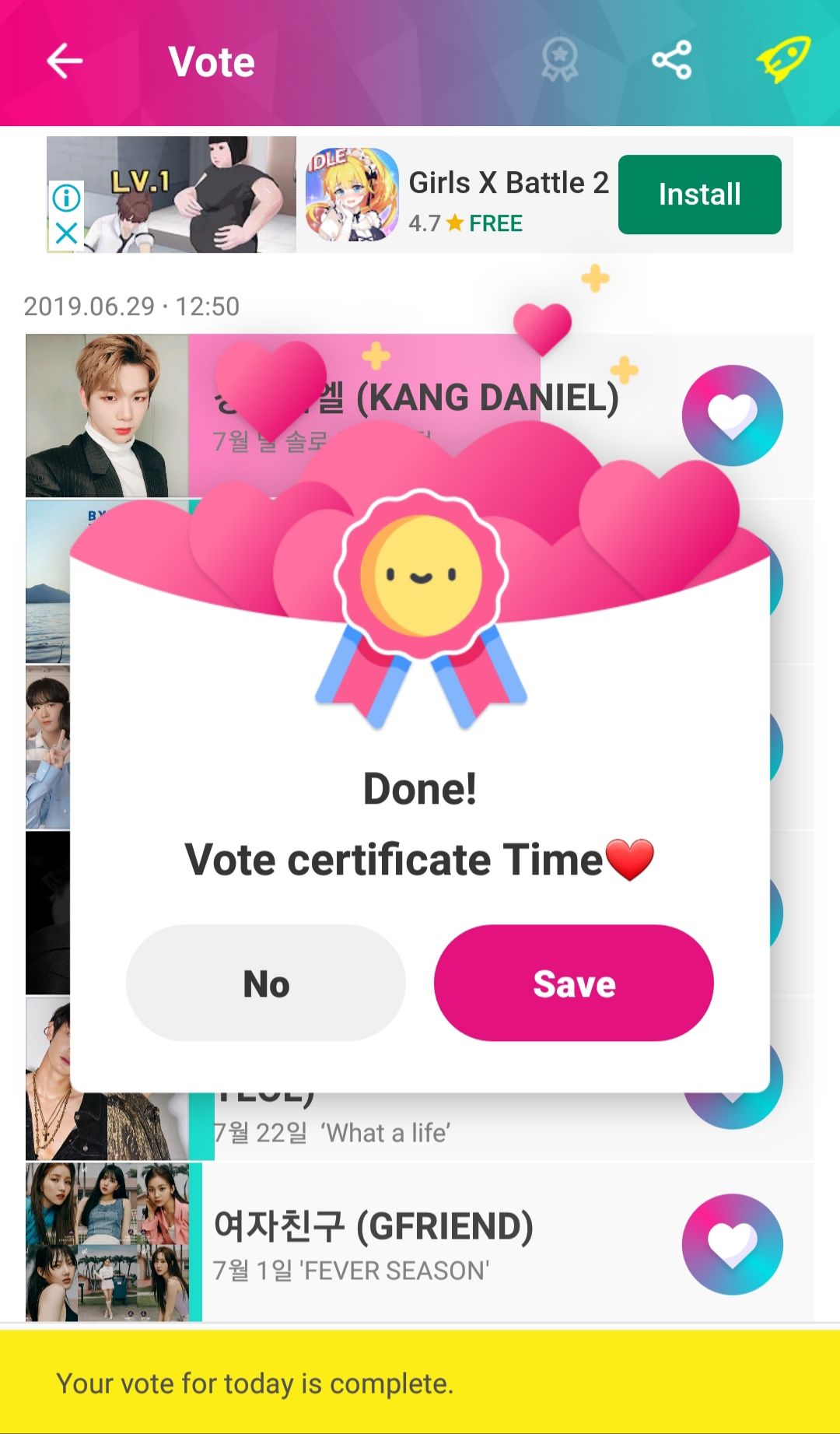 ใน1วัน สามารถกดโหวตได้ 30 ครั้ง และในทุก 1ครั้งที่กดโหวตจะเสียหัวใจ 10 ดวง