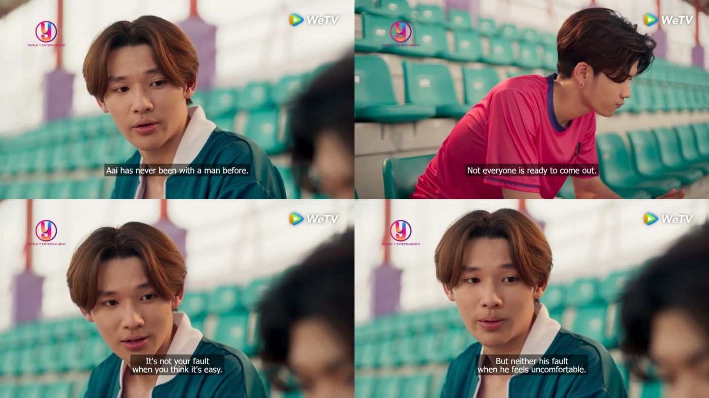 ซึ่ง Ep.5 นี่แหละ ที่ทำให้พี่อ้ายกลายมาเป็นตัวละครโปรดของเรา เพราะเราได้เห็นว่าพี่อ้ายมีเป้าหมายที่ชัดเจน มีความมุ่งมั่นและความตั้งใจที่จะทำตามความฝัน ซึ่งมันทำให้เราชื่นชมและคอยเป็นกำลังใจให้ตัวละครนี้มาก ๆ (แน่นอนว่าเราเชียร์ให้พี่อ้ายไปญี่ปุ่น ^^) แต่พอมาถึง Ep.7 พี่อ้ายที่เคยมีความมุ่งมั่นและตั้งใจเรียนเพื่อจะขอทุนไปเรียนต่อ กลับลังเลที่จะไม่ไปซะงั้น ซึ่งเหตุผลของความลังเลก็จะเป็นใครไปไม่ได้นอกจากแสนนั่นแหละ เมื่อความรักบังเกิด มันก็ยากที่จะทำใจมองข้ามล่ะนะ แถมแสนก็ยังเป็นสุดยอด Supportive boyfriend อีก แสน-อ้ายค่อนข้างเป็นความสัมพันธ์ที่เฮลตี้และน่ารัก เพราะเวลามีเรื่องอะไรทั้งสองคนก็จะคุยกันเพื่อหาทางแก้ตลอด ไม่เคยปล่อยปัญหาให้ค้างไว้นาน
