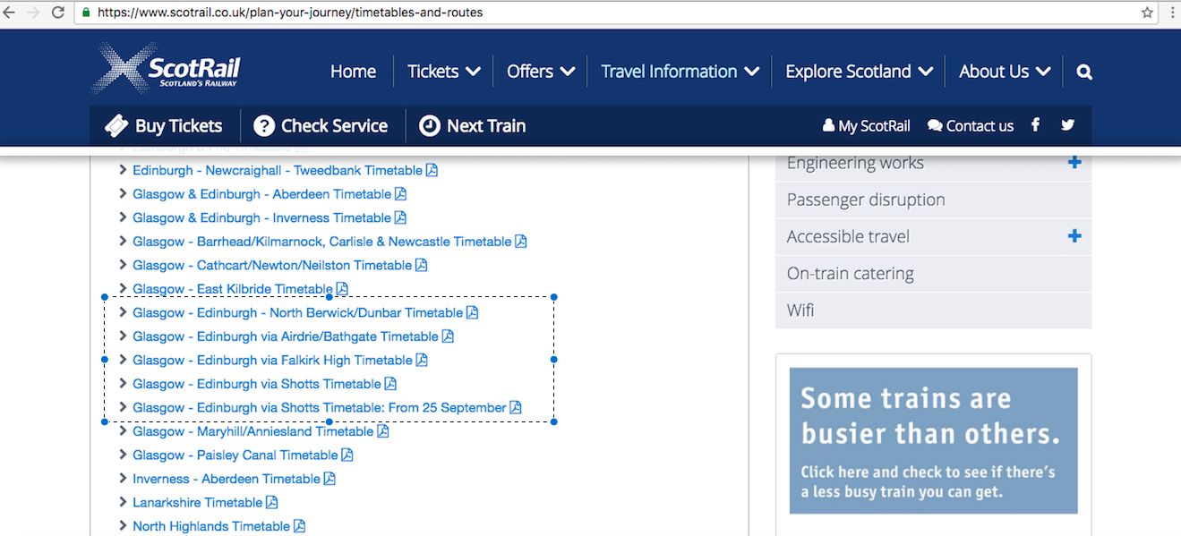 เลื่อนลงมาเรื่อยๆจะเจอตรงที่ทำสี่เหลี่ยมครอบไว้อยู่ เป็น route ทั้งหมดจาก กลาสโกลว์ถึงเอดินเบอระ