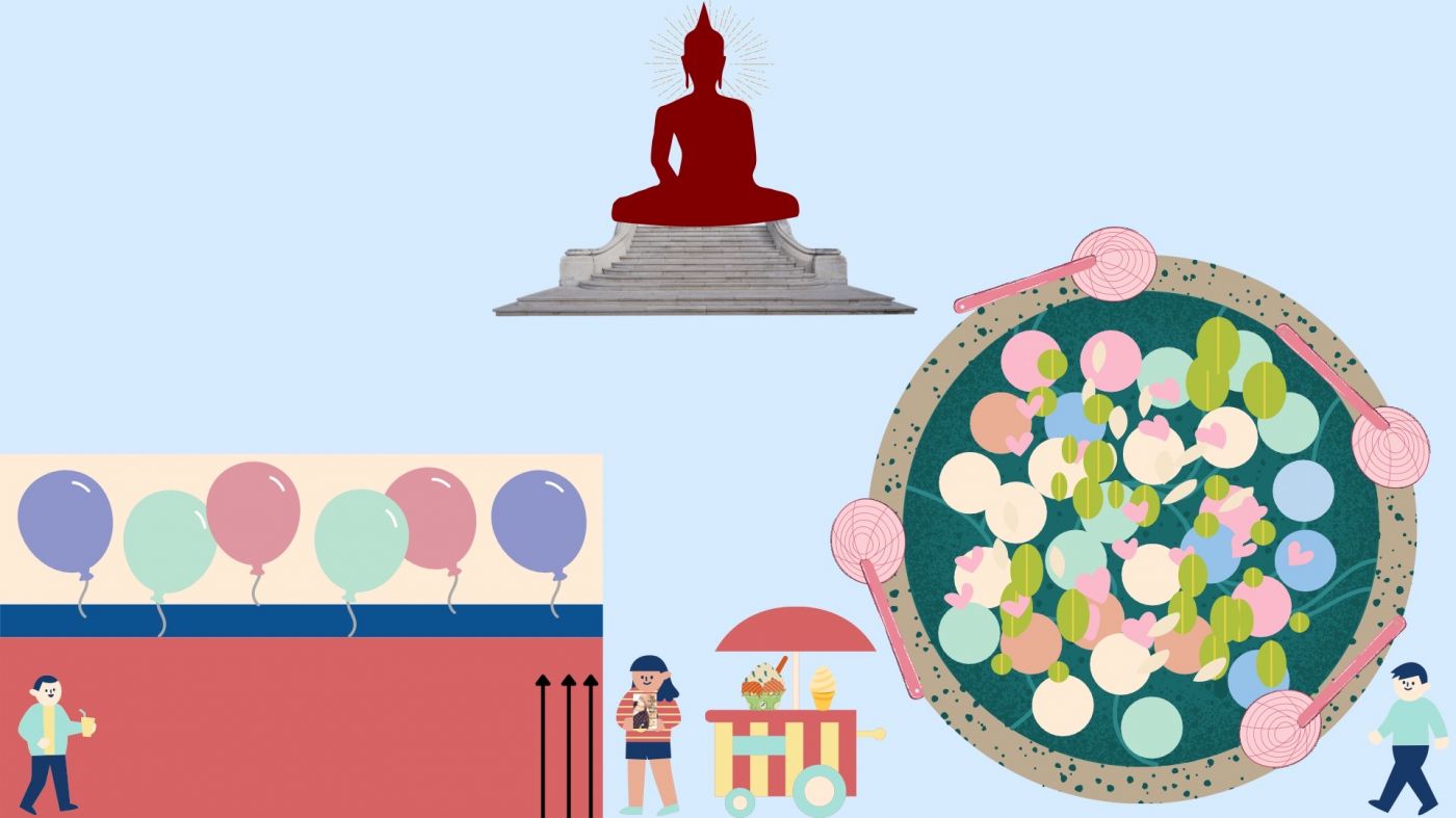 สถานที่ต่อมา ยิงลูกโปง ตกไข่ปลา และไหว้พระ