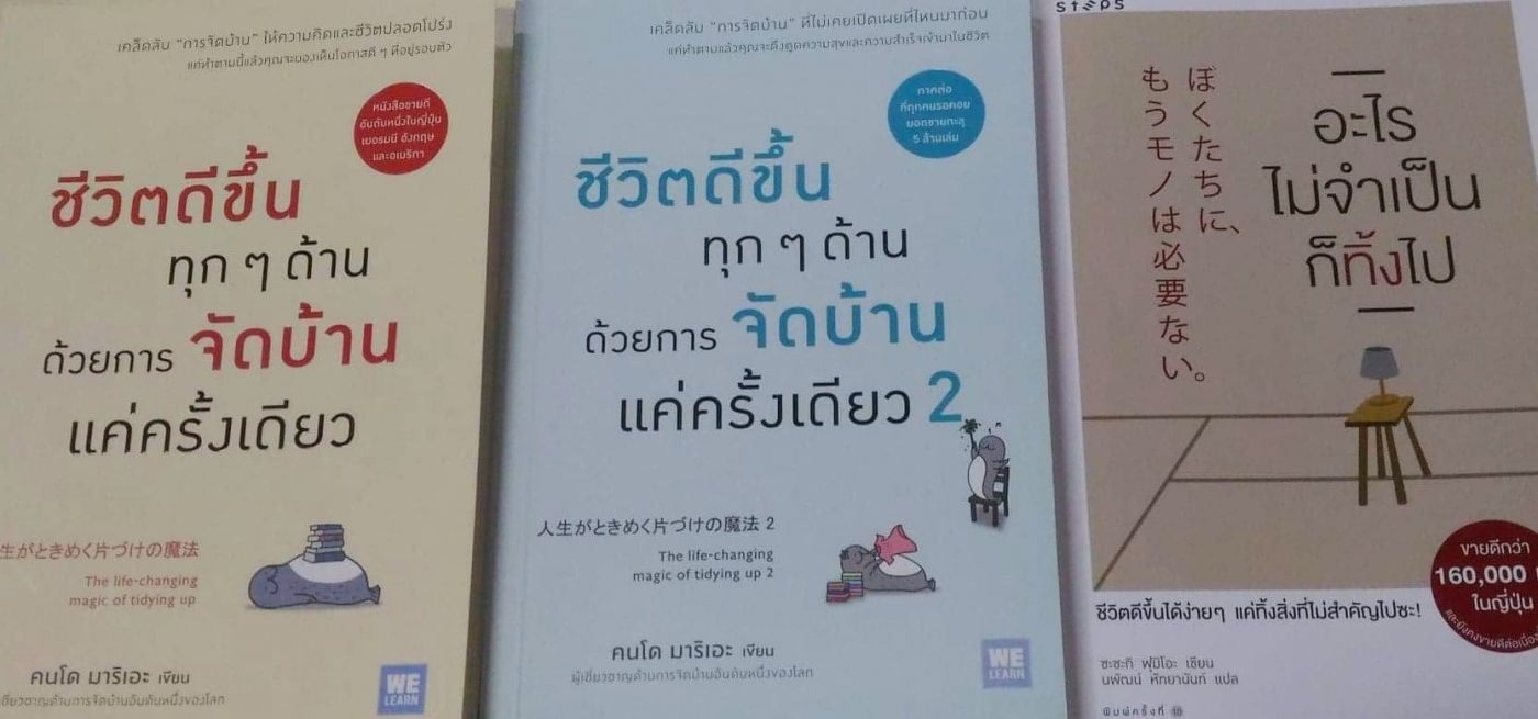 เลย...มาลงตัวที่สองเล่มหลัง (รู้สึกว่า เป็นทางสายกลาง เค้าให้ทิ้งก่อน เลือกเก็บเท่าที่จำเป็นแล้วจัดมันให้เข้าที่เข้าทาง) ( “ชีวิตดีขึ้นทุกๆด้าน ด้วยการจัดบ้านแค่ครั้งเดียว” โดย คนโด มาริเอะ)