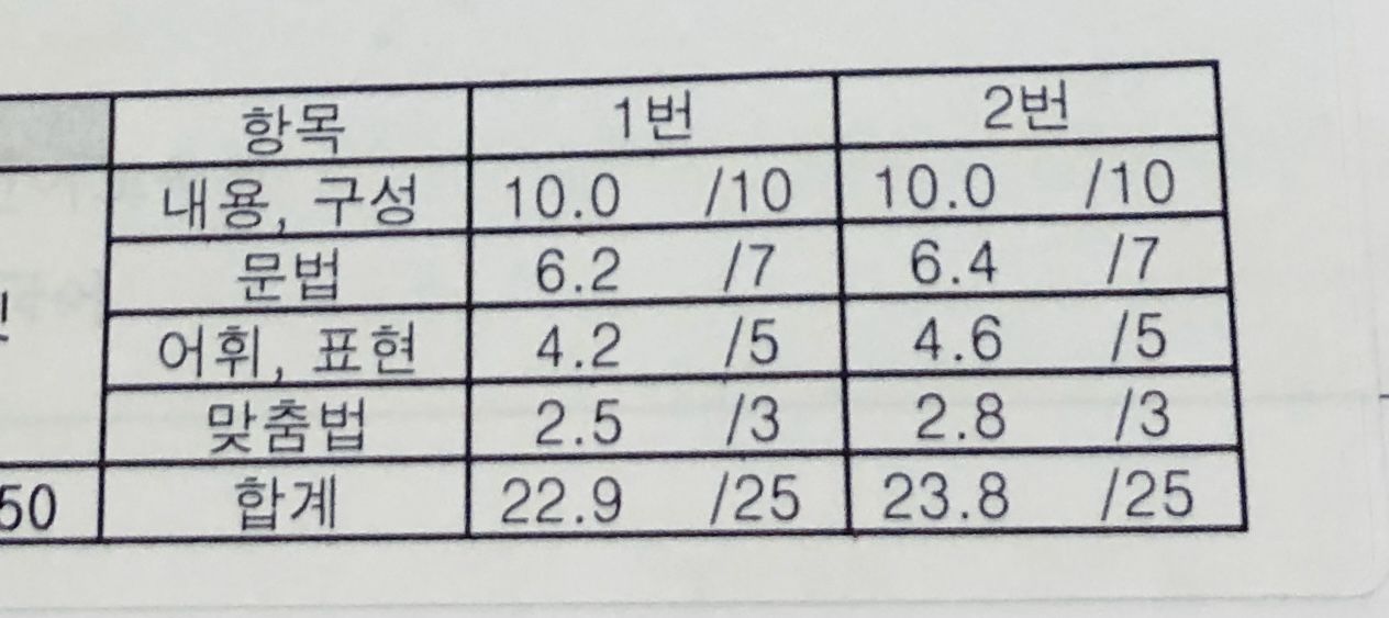 ข้อสอบจะให้เขียนทั้งหมด 2 บทความ ซึ่งบทความนึงจะมาจากการบ้าน Writing ที่เราเคยเขียนไปแล้วเป๊ะ ๆ เลย ส่วนอีกบทความนึงจะคล้าย ๆ การบ้านที่เคยทำ แต่จะมีเปลี่ยนดีเทลนิดหน่อย เช่น ถ้าเราเคยทำเขียนการบ้านเป็นเรื่องสถานที่ท่องเที่ยวในเกาหลี ในข้อสอบอาจจะเปลี่ยนเป็นให้แนะนำสถานที่ท่องเที่ยวในประเทศตัวเองค่ะ (อันนี้ยกตัวอย่างน้า จำเป๊ะๆไม่ได้แน้ว y_y) ให้เวลาทั้งหมด 80 นาทีให้เราจัดการเองได้เลยว่าอยากเขียนบทความไหนยาวเท่าไหร่จะใช้เวลากี่นาที