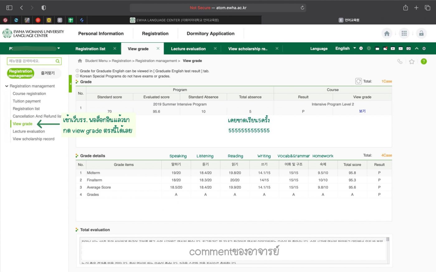 ส่วนหลังสอบไฟนอลจะเป็นการประกาศคะแนนบนเว็บไซต์ที่เราใช้สมัครเรียน ซึ่งจะประกาศคะแนนรวมถึงประกาศว่าเราผ่านไปเรียนเลเวลถัดไปได้มั้ย แล้วก็มี comment เพิ่มเติมจากอาจารย์ค่ะ :-)