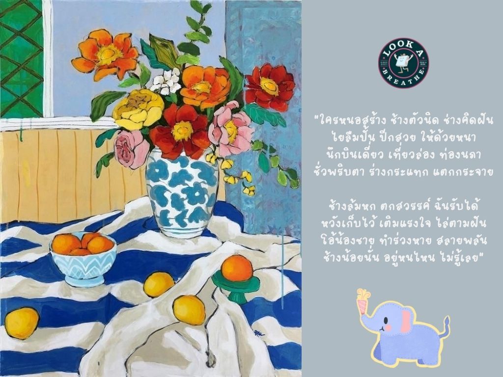 หนังสือเล่มนี้อ่านแล้วชอบเรื่องราวสู่ความฝันมาก แล้วช้างตัวน้อยที่เป็นแค่เครื่องปั้นดินเผาจะมีชีวิตและเดินตามความฝันที่เป็นช้างบินได้ยังไง ก็ลองมาติดตามในเล่มนี้กันดูค่ะ