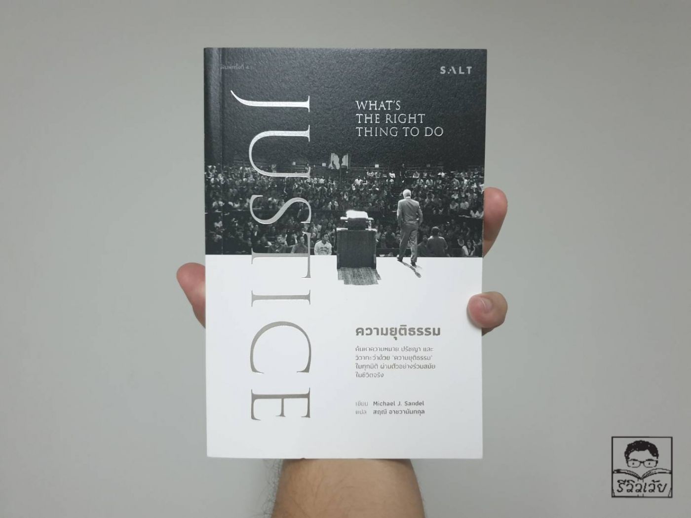 ข้อความข้างต้นและเนื้อเพลงที่หยิบยกขึ้นมาเป็นบทเปิดของรีวิวเว้ยของ "JUSTICE ความยุติธรรม" หนังสือแปลในตำนานที่สมัยออกมาแรก ๆ นั้นเป็นที่ถูกพูดถึงอย่างมากในสังคมไทย โดยฉบับที่หยิบมาทำการรีวิวในครั้งนี้คือฉบับพิมพ์ครั้งที่ 4 เนื้อหาของเพลง "ยุติ-ธรรม" ของวง "TaitosmitH" คือสิ่งแรกที่ปรากฏขึ้นเมื่อเรากดหาคำว่า "ยุติธรรม" น่าสนใจว่าคำว่ายุติธรรมในสังคมไทยนั้นผูกโยงอยู่กับอะไรกัรแน่ (?) ถึงปรากฏคำค้นของความยุติธรรมมาในลักษณะของคำคู่ขนานอย่าง ยุติ-ธรรม